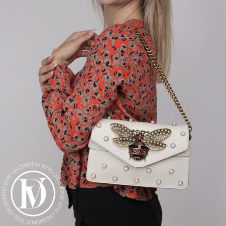 De grosses perles nacrées sur le sac