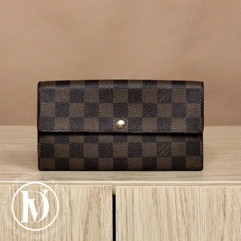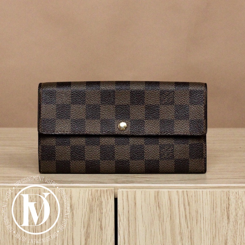 Dénichez notre Portefeuille Sarah en toile damier ébène - Louis Vuitton dans la collection Portefeuilles de luxe d'occasion pour femmes fabriqué par la grande maison de luxe Louis Vuitton