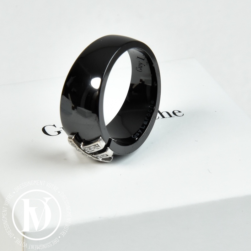 Bague céramique noire & diamants t.53/54 – Guy Laroche