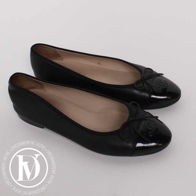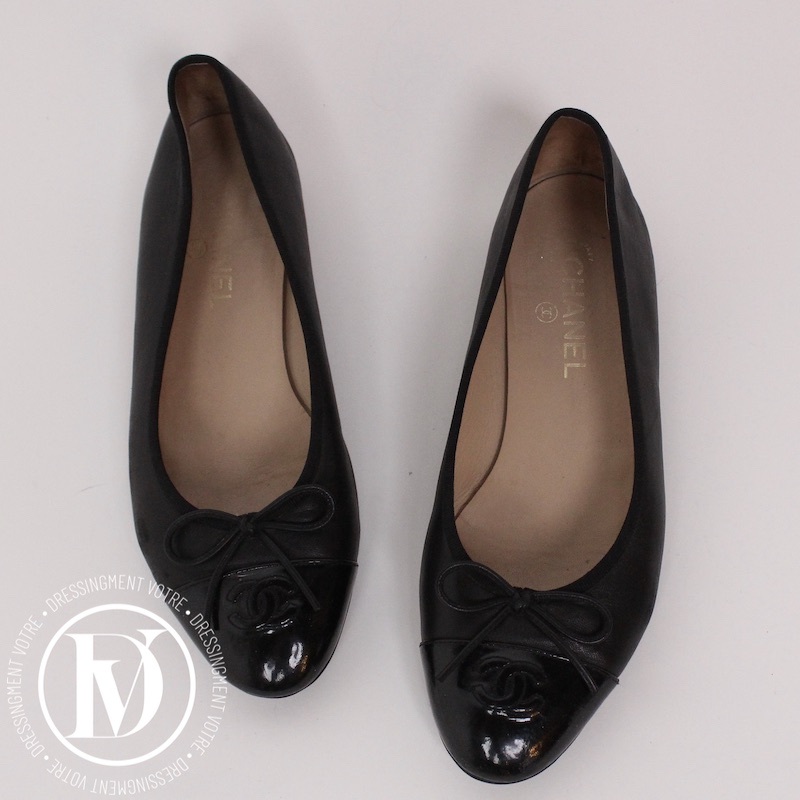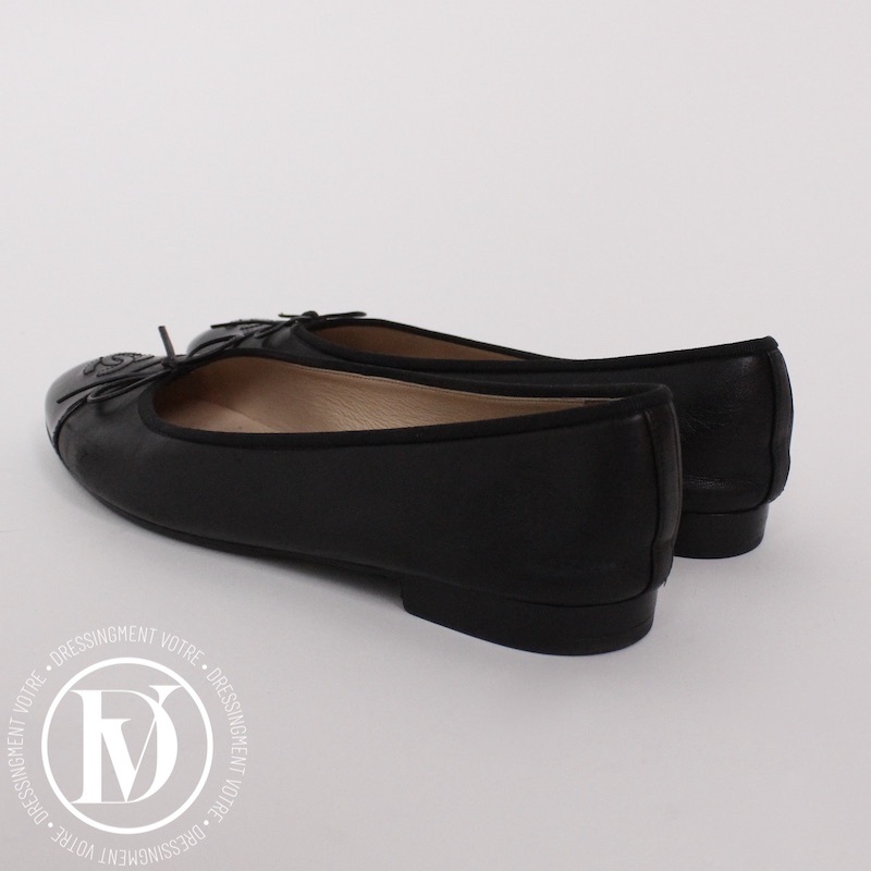 Ballerines en cuir de veau noir p.40,5 – Chanel