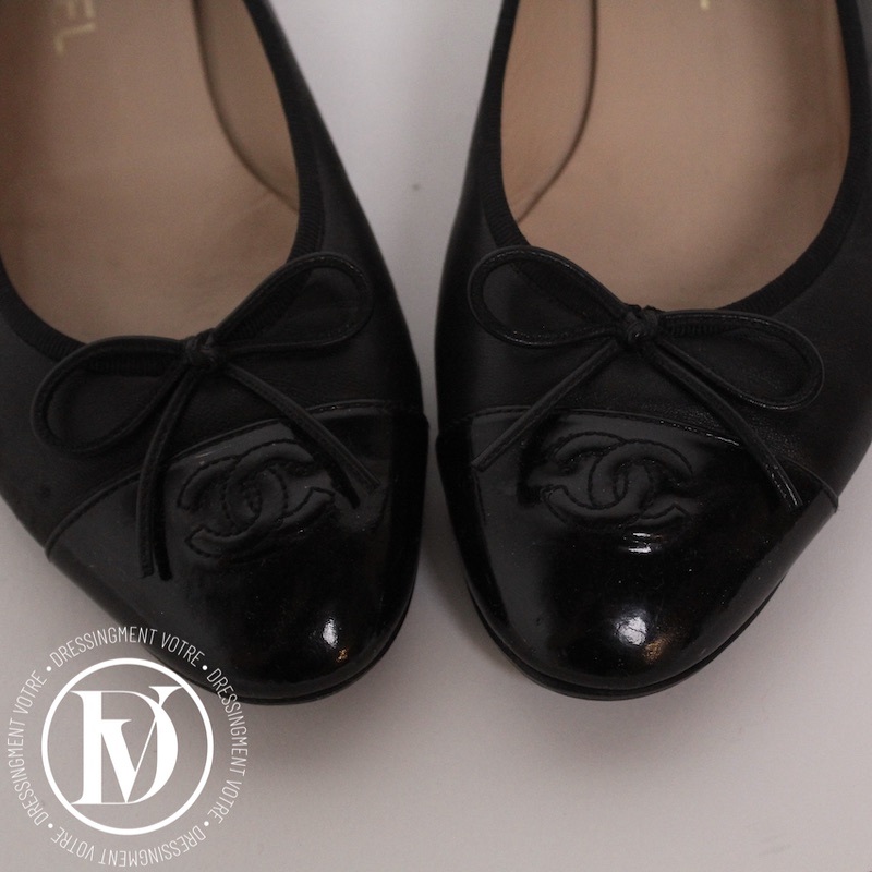 Achetez notre Ballerines en cuir de veau noir p.40,5 - Chanel dans la catégorie Chaussure de luxe d’occasion pour femmes élaboré par la grande maison de luxe Chanel