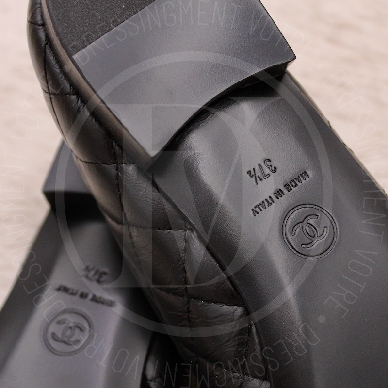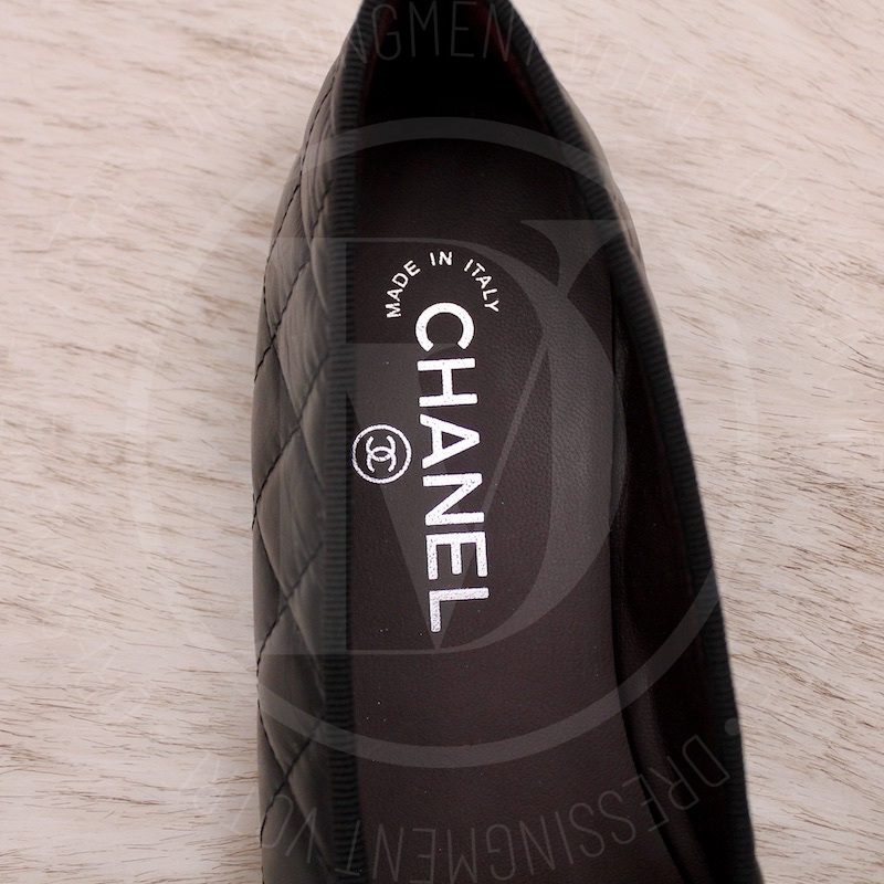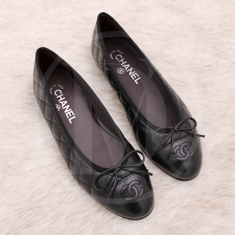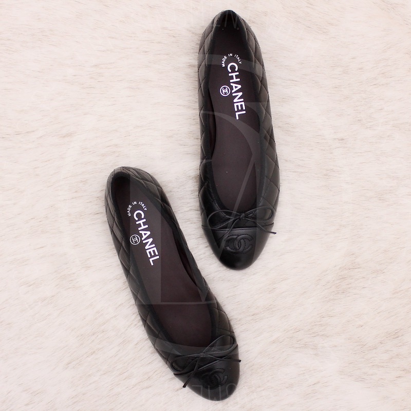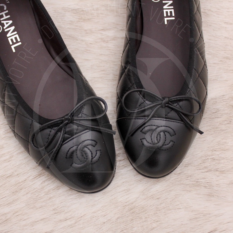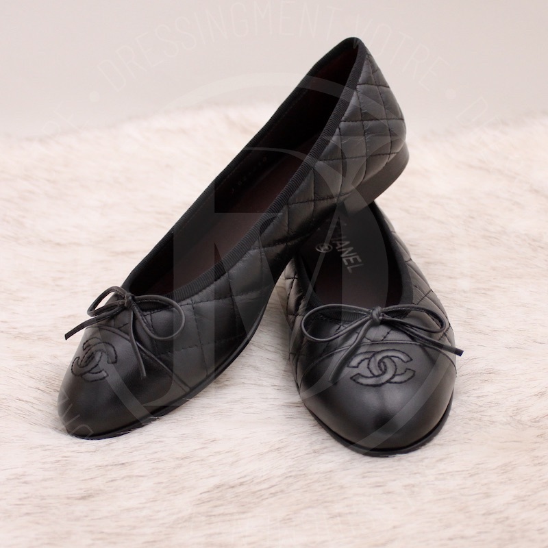 Ballerines en cuir de veau vieilli noir p.37,5 – Chanel