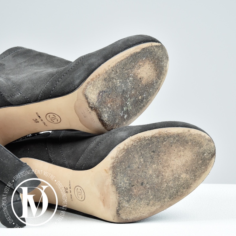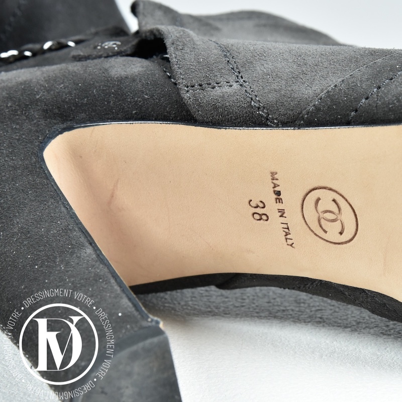 Achetez notre Bottines à talon en daim gris p.38 - Chanel dans la catégorie Chaussure de luxe d’occasion pour femmes élaboré par la grande maison de luxe Chanel