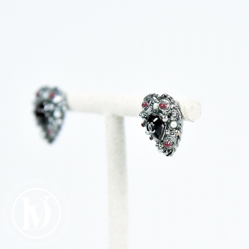 Boucles d’oreilles coeur en métal et émail – Chanel