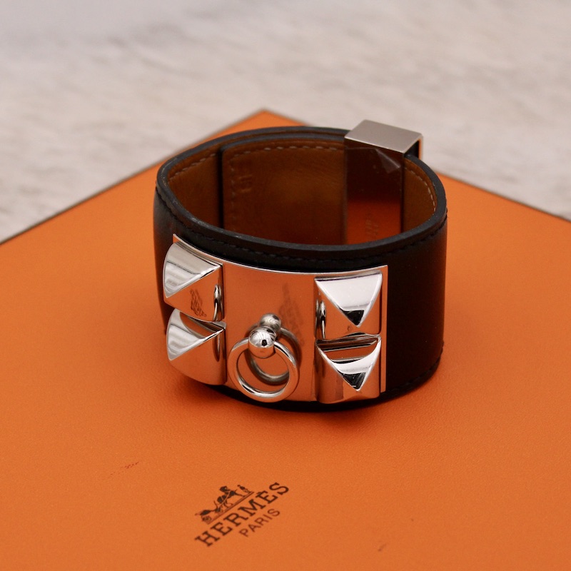Bracelet Collier de Chien en cuir box noir – Hermès