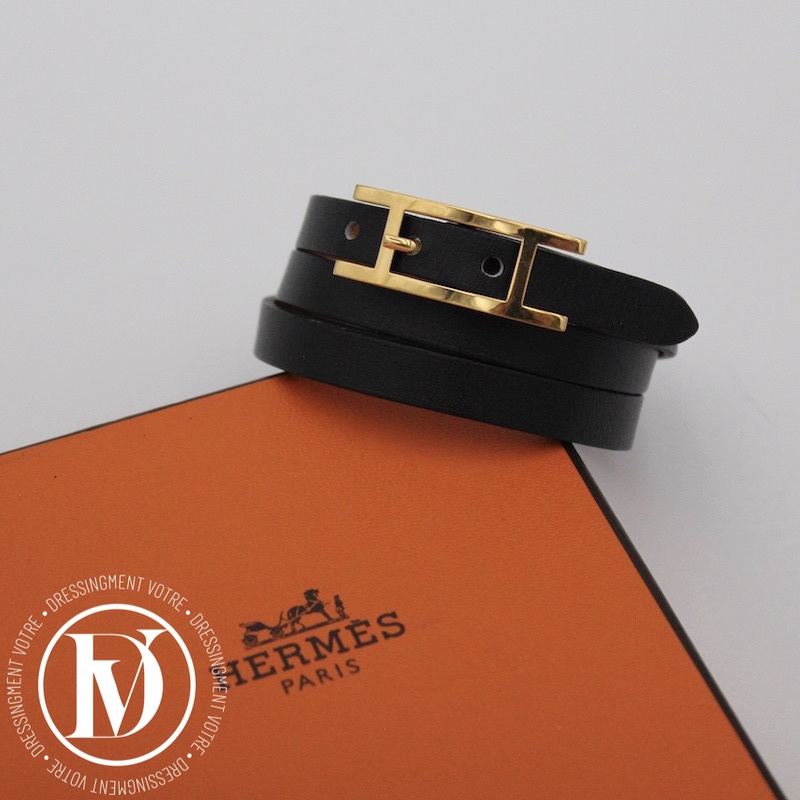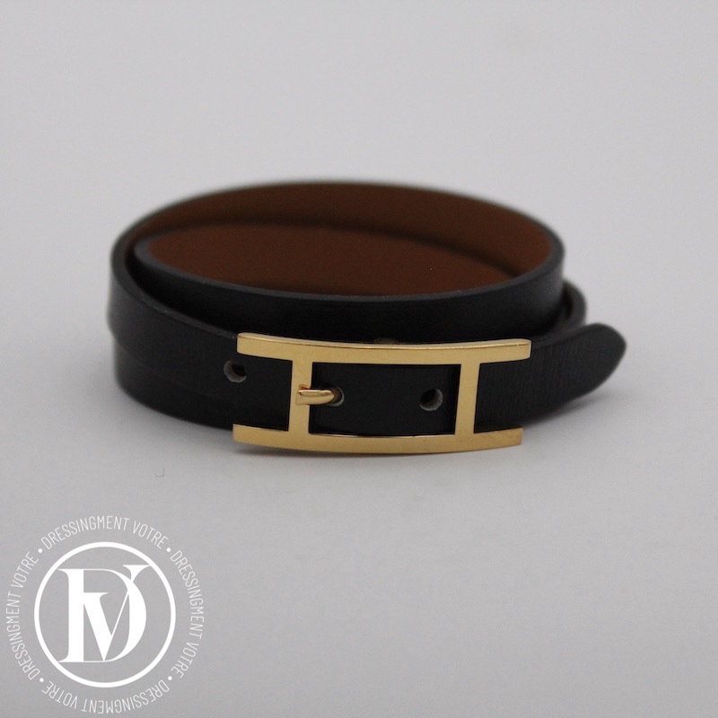 Appréciez notre Bracelet Hapi 3 en cuir noir - Hermès dans la catégorie Hermès d'occasion élaboré par la grande maison de luxe Hermès