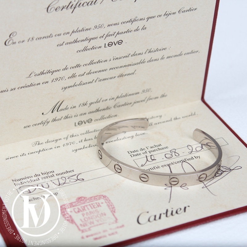 Appréciez notre Bracelet Love en or gris t.16 - Cartier dans la gamme Bracelets d'occasion de luxe pour femmes créé par la grande maison de luxe Cartier
