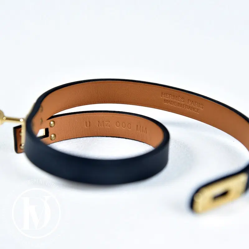 Appréciez notre Bracelet mini Kelly double tour en cuir noir t.1 - Hermès dans la catégorie Hermès d'occasion élaboré par la grande maison de luxe Hermès