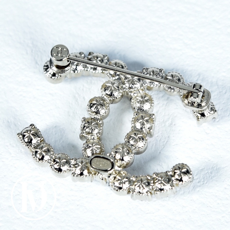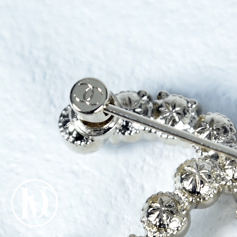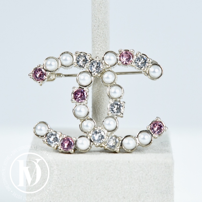 Dénichez notre Broche CC en métal champagne, perles et strass - Chanel dans la catégorie Cadeaux de luxe d'occasion pour femmes élaboré par la grande maison de luxe Chanel