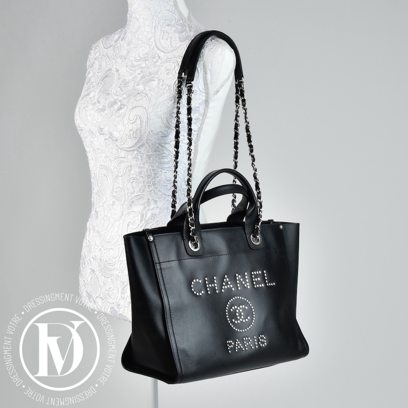 Dénichez notre Cabas Deauville en cuir caviar noir - Chanel dans la gamme Sacs portés main luxe occasion pour femmes créé par la grande maison de luxe Chanel