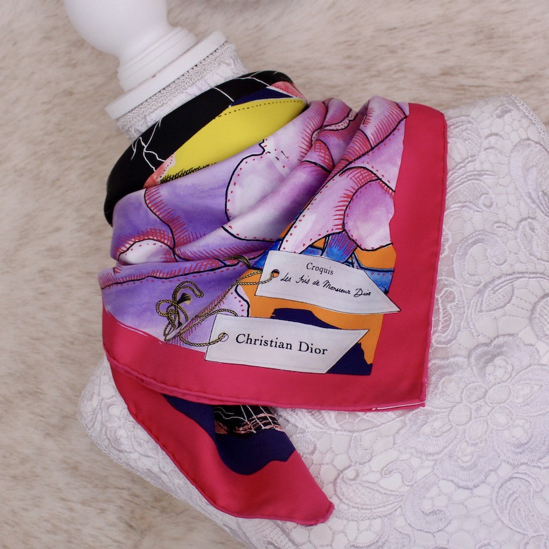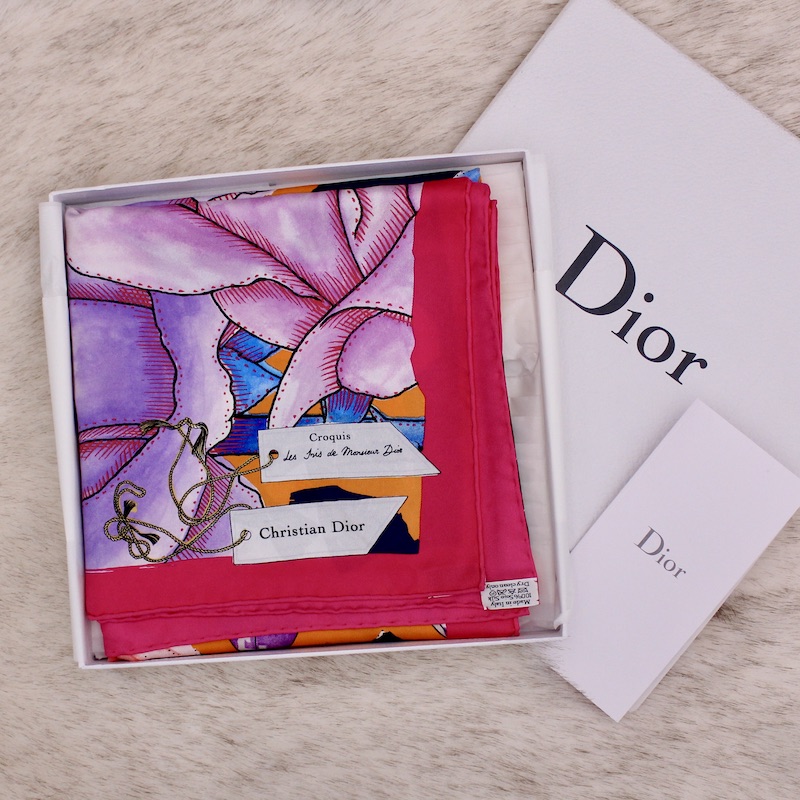 Appréciez notre Carré de soie 90 Les iris de monsieur Dior - Dior dans la catégorie Cadeaux de luxe d'occasion pour femmes élaboré par la grande maison de luxe Dior