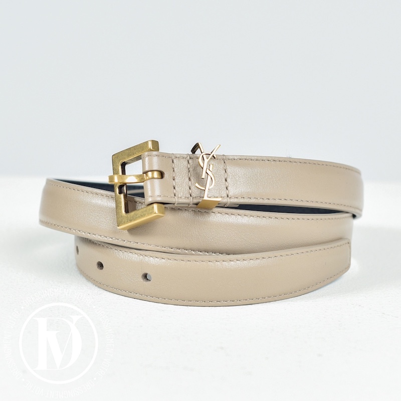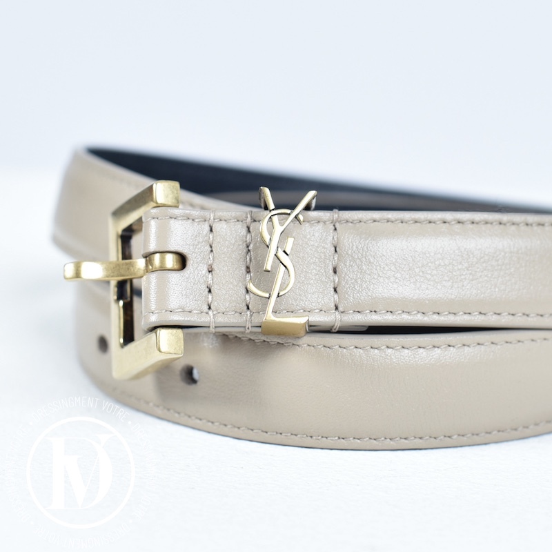 Dénichez notre Ceinture Cassandre en cuir beige t.70 - Saint Laurent dans la gamme Yves Saint Laurent créé par la grande maison de luxe Saint Laurent