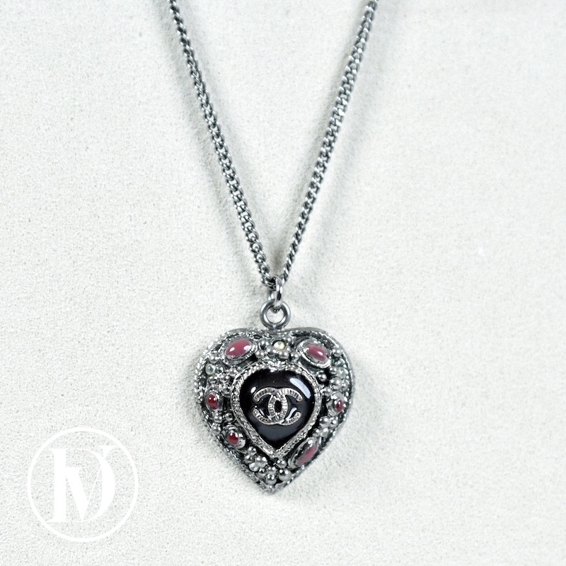 Dénichez notre Collier coeur en métal et émail - Chanel dans la catégorie Cadeaux de luxe d'occasion pour femmes élaboré par la grande maison de luxe Chanel