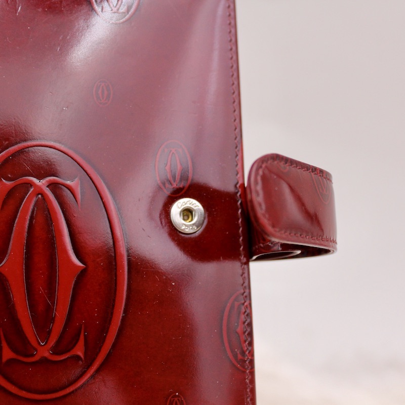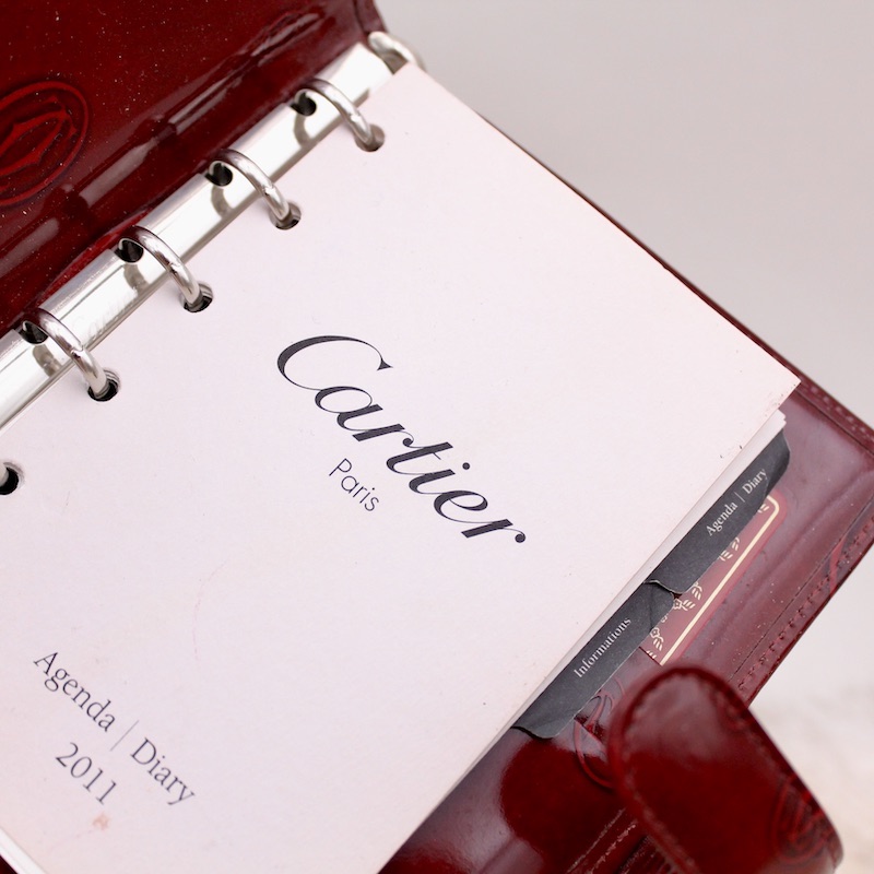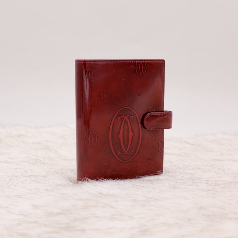 Dénichez notre Couverture d'Agenda Happy Birthday en cuir rouge - Cartier dans la collection Petites maroquinerie de luxe d'occasion pour femmes fabriqué par la grande maison de luxe Cartier