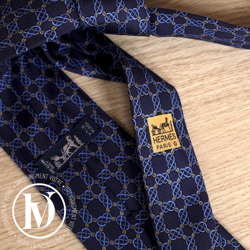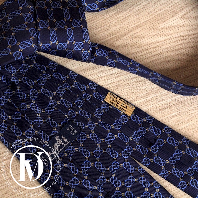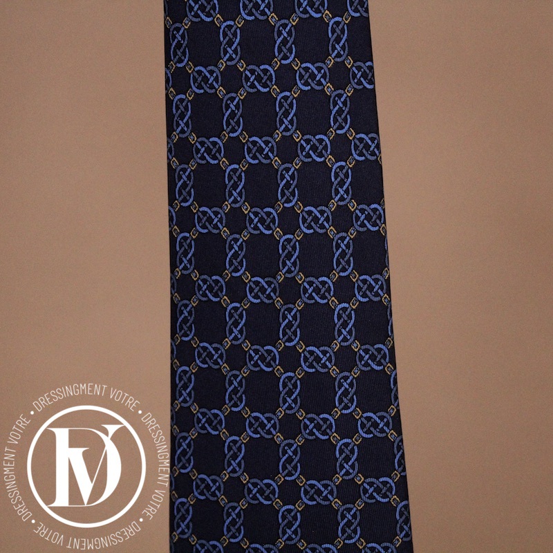 Cravate vintage en soie bleu marine – Hermès