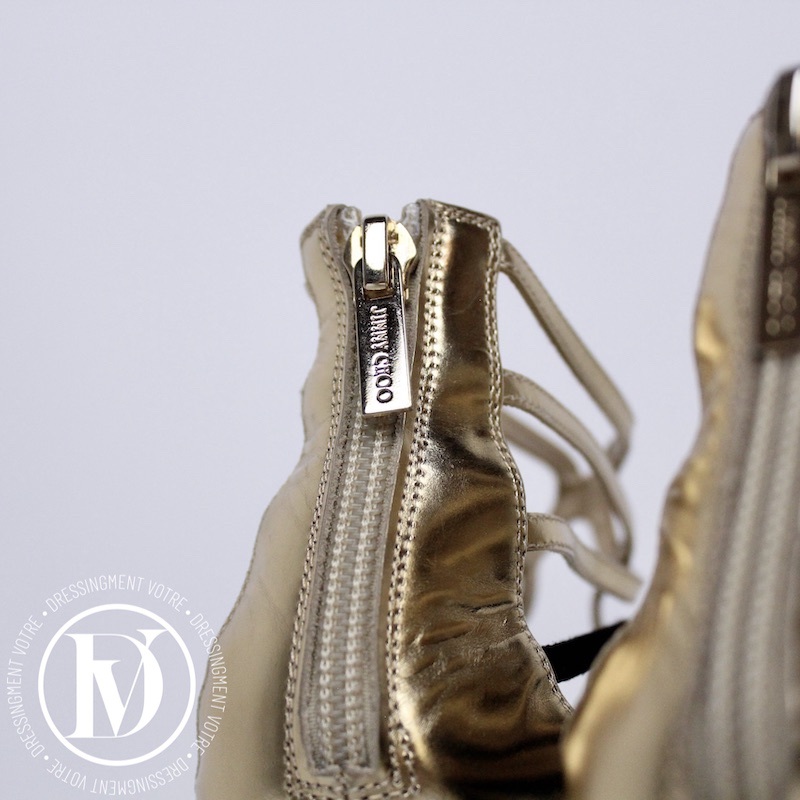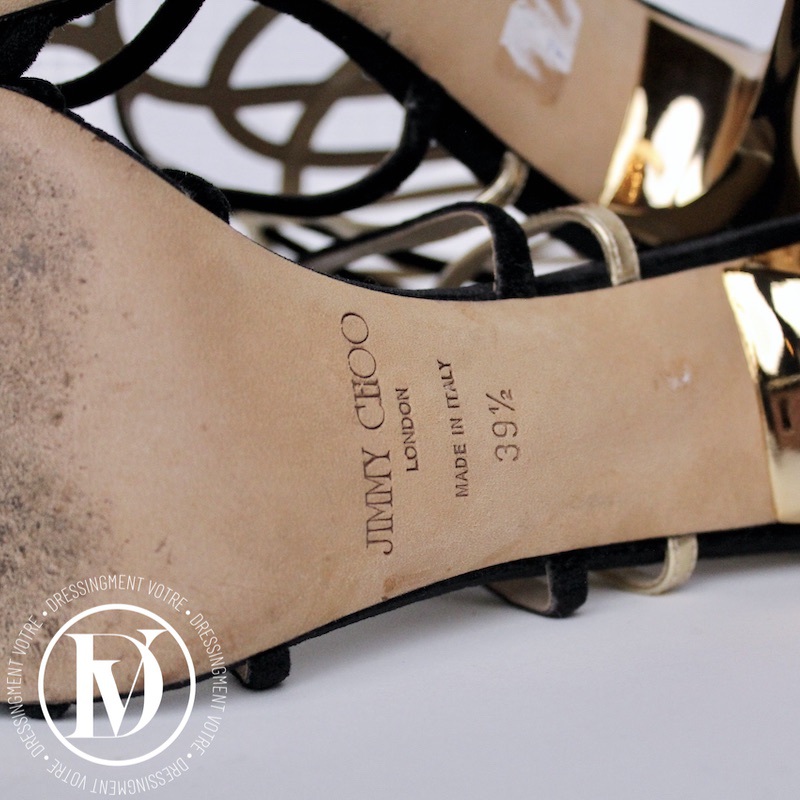 Découvrez notre Escarpins à brides noirs et dorés p.39,5 - Jimmy Choo dans la catégorie Chaussure de luxe d’occasion pour femmes élaboré par la grande maison de luxe Jimmy Choo