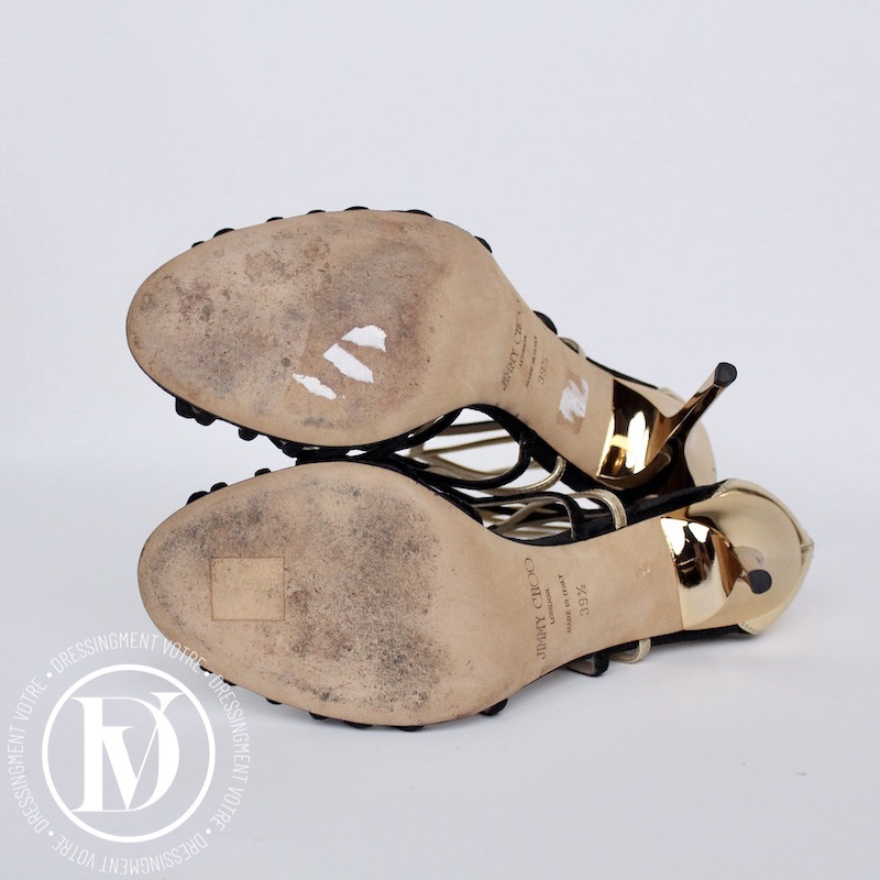 Escarpins à brides noirs et dorés p.39,5 – Jimmy Choo