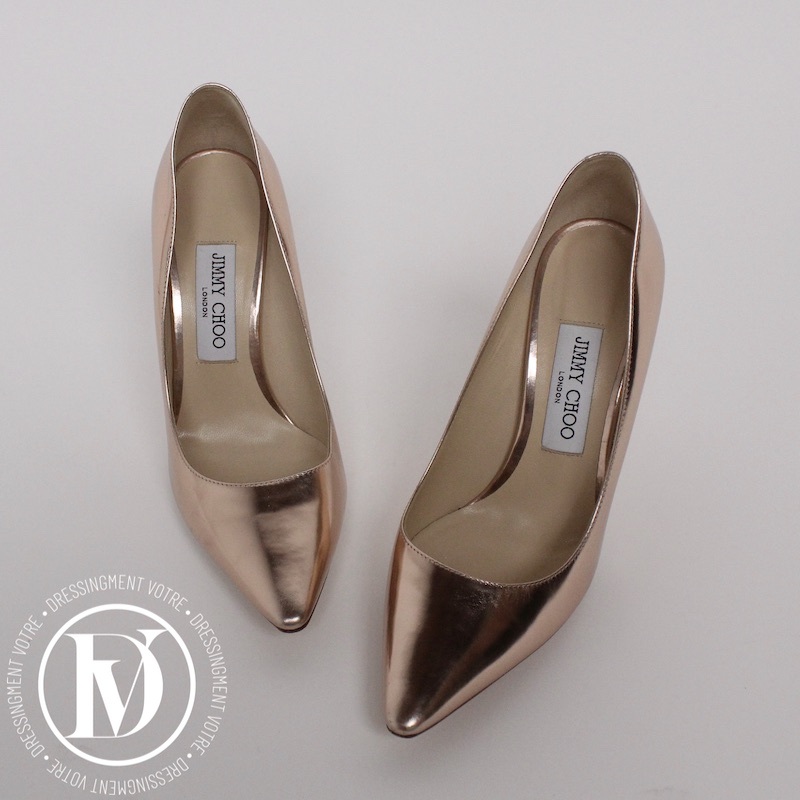 Escarpins en cuir métallisé doré p.37,5 – Jimmy Choo