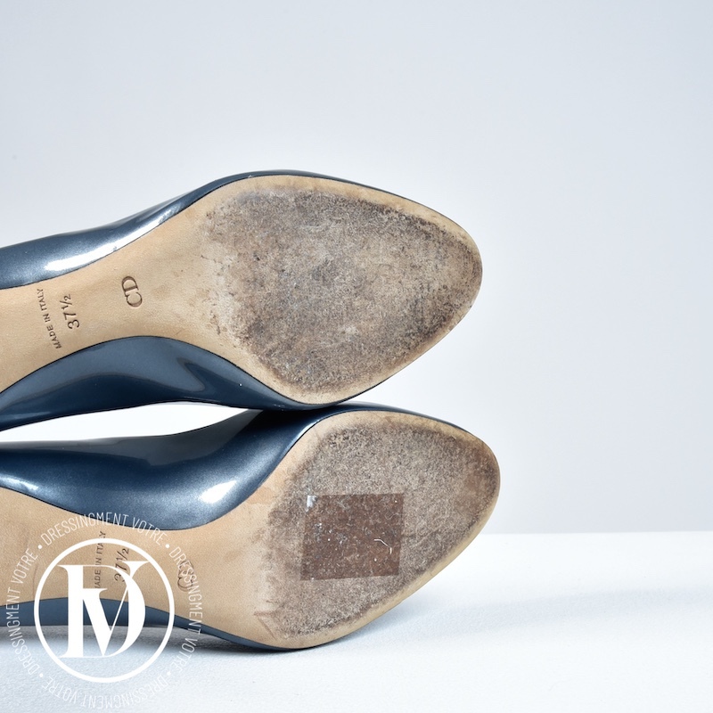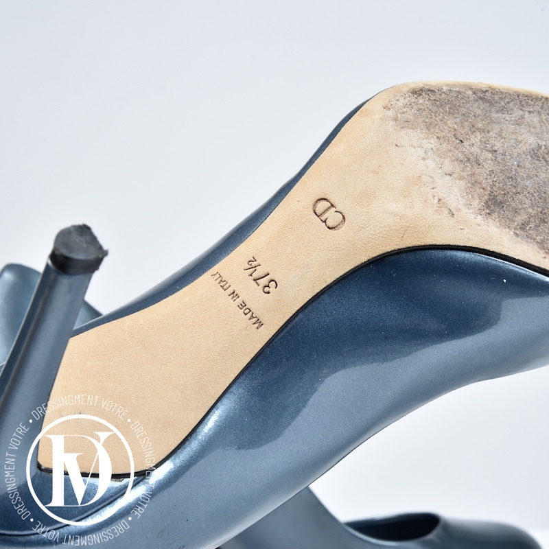 Escarpins en cuir verni bleu/gris p.37,5 – Dior