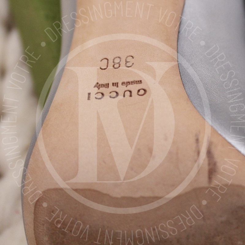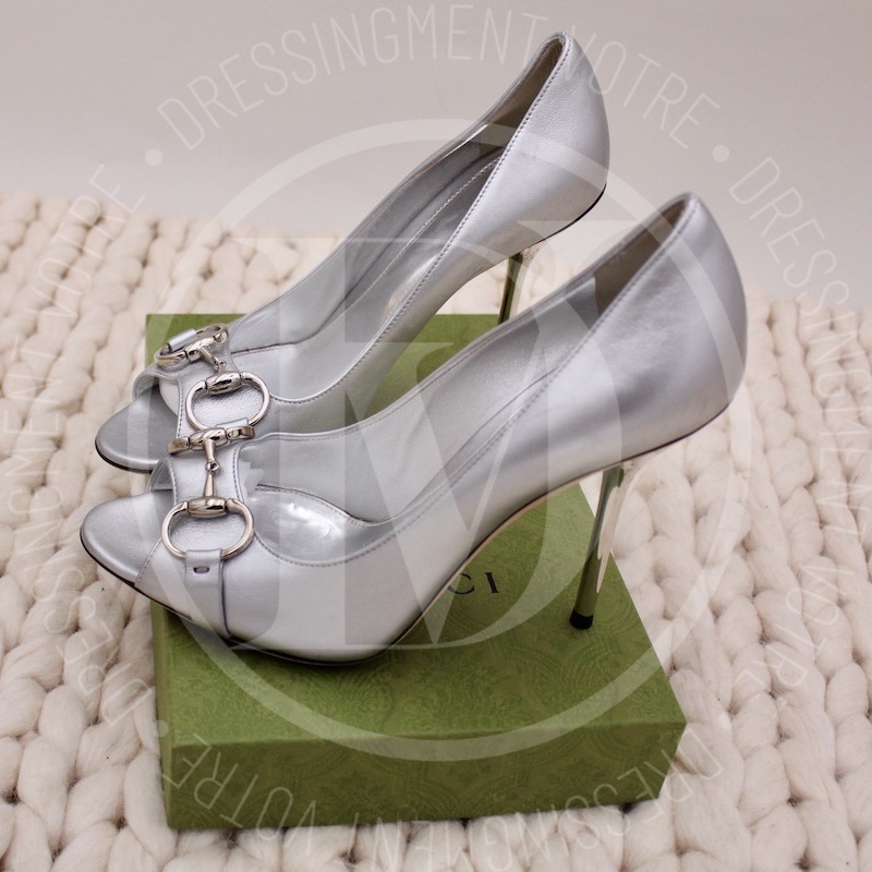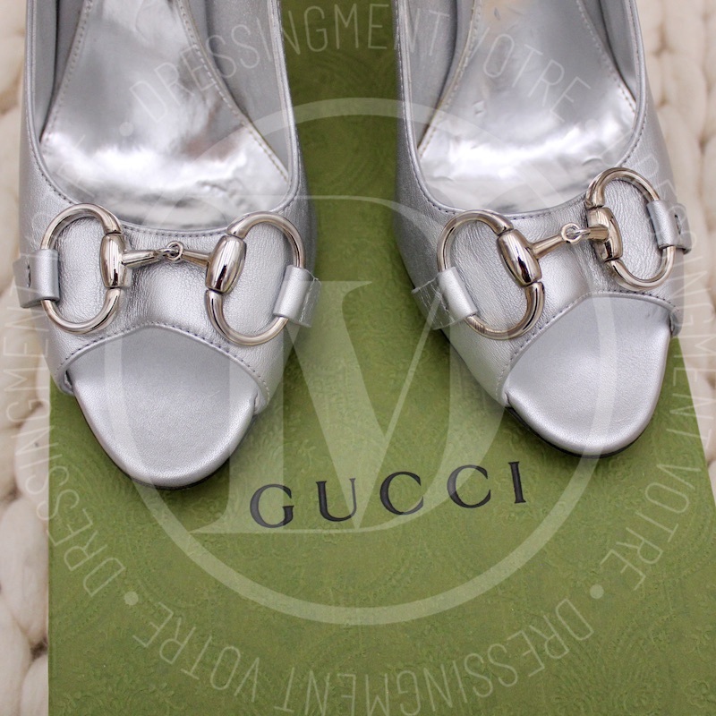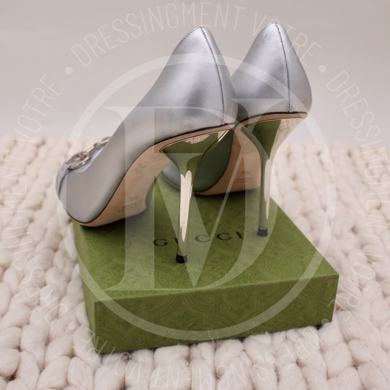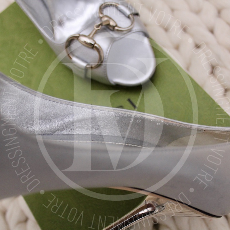 Achetez notre Escarpins Horsebit en cuir argenté p.38 - Gucci dans la catégorie Chaussure de luxe d’occasion pour femmes élaboré par la grande maison de luxe Gucci