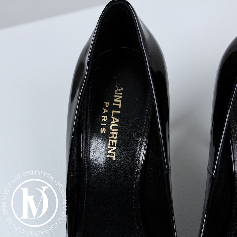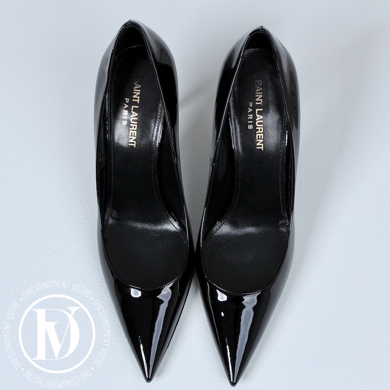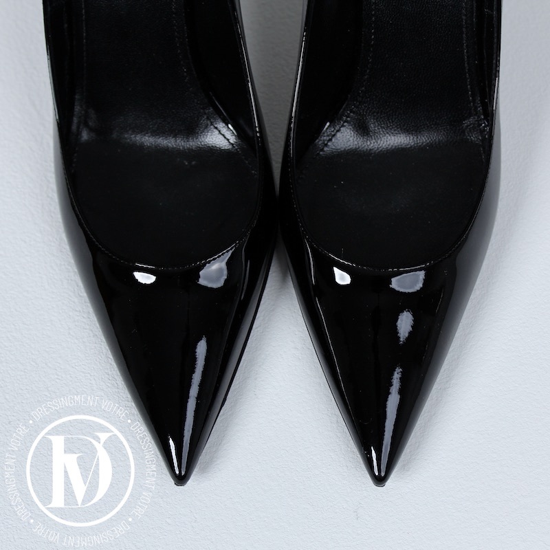 Dénichez notre Escarpins Lexi 90 en cuir verni noir p.38 - Saint Laurent dans la gamme Yves Saint Laurent créé par la grande maison de luxe Saint Laurent
