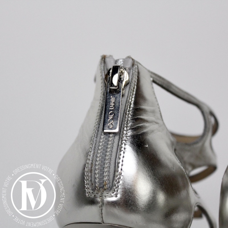 Appréciez notre Escarpins Ren 100 en cuir argenté p.39 - Jimmy Choo dans la catégorie Chaussure de luxe d’occasion pour femmes élaboré par la grande maison de luxe Jimmy Choo