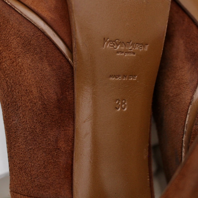 Appréciez notre Escarpins Tribute 105 en daim marron p.38 - Saint Laurent dans la gamme Yves Saint Laurent créé par la grande maison de luxe Saint Laurent