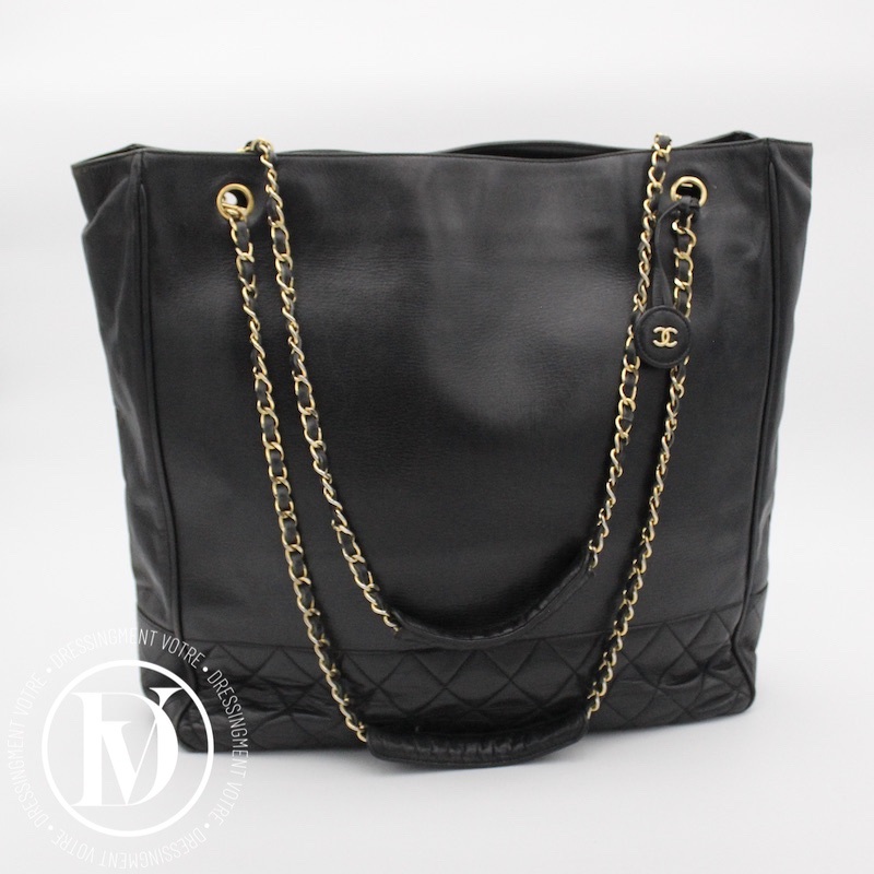 Achetez notre Grand cabas shopping vintage en cuir noir - Chanel dans la catégorie Sac porté épaule de luxe de seconde main pour femmes élaboré par la grande maison de luxe Chanel