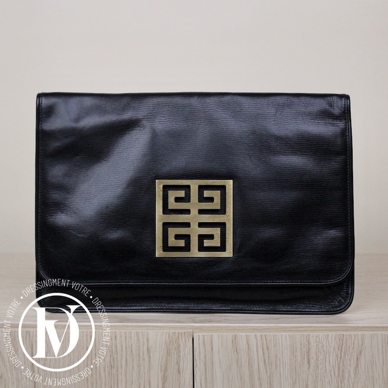 Dénichez notre Grande pochette en cuir noir - Givenchy dans la catégorie Pochettes de luxe d'occasion pour femmes élaboré par la grande maison de luxe Givenchy