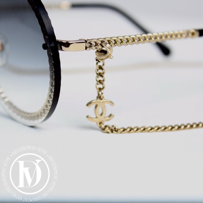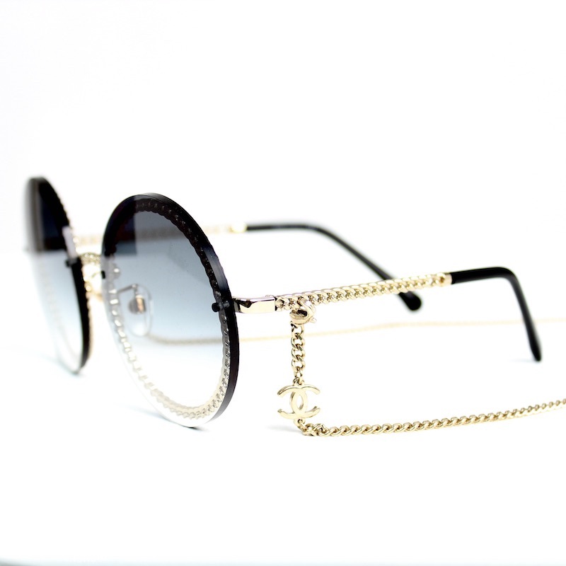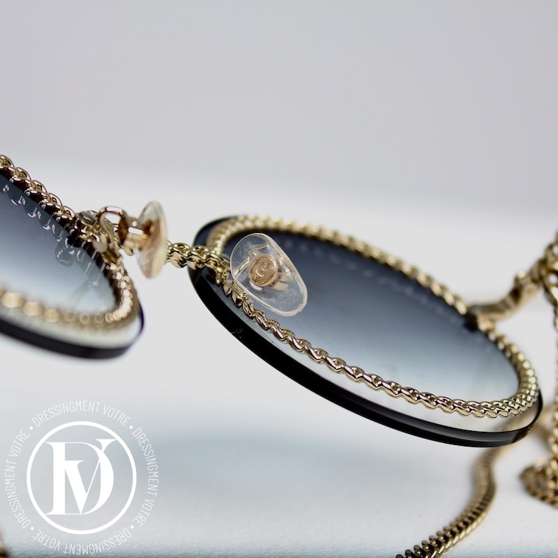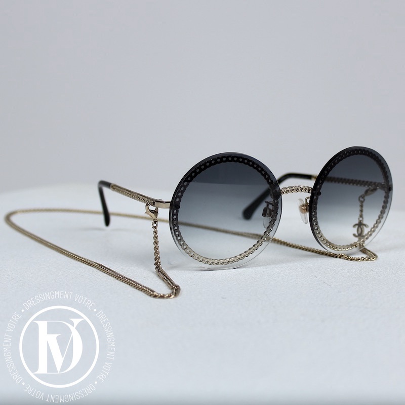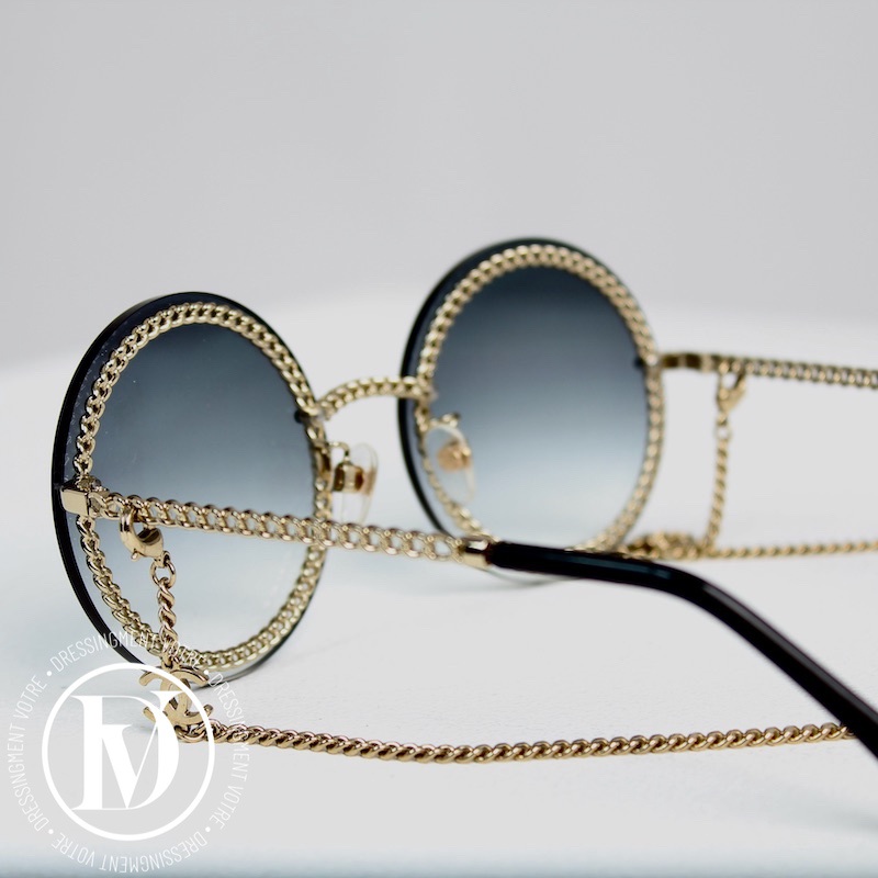 Lunettes de soleil chaîne rondes en métal doré – Chanel