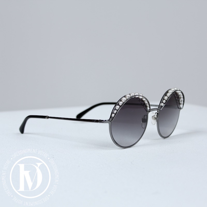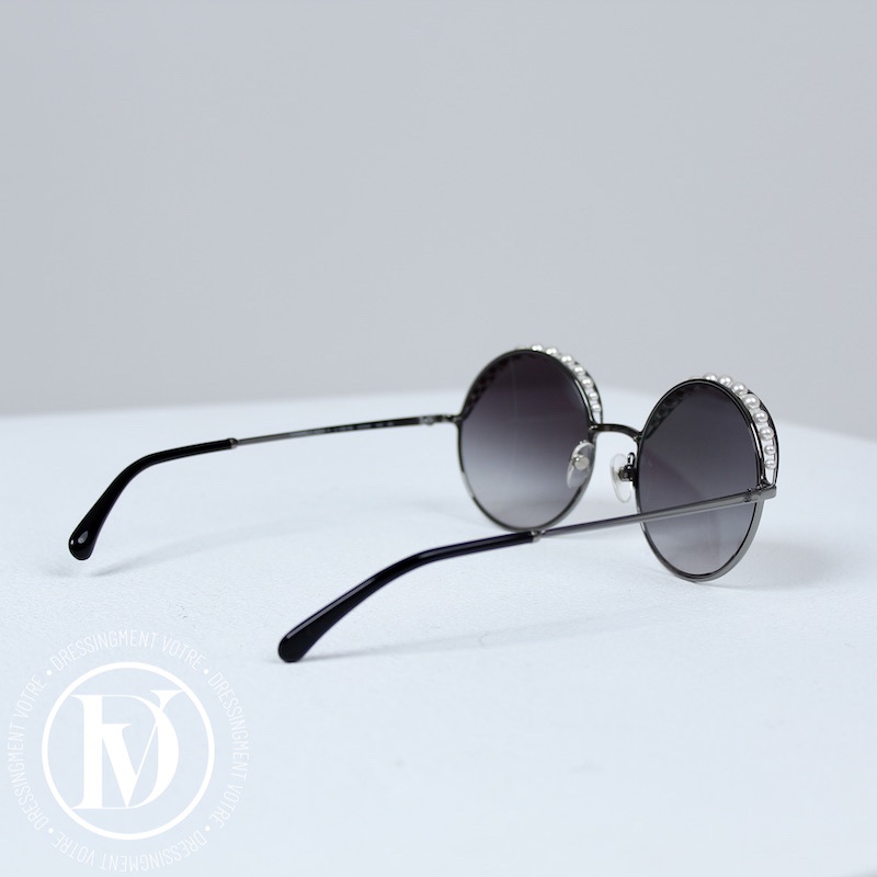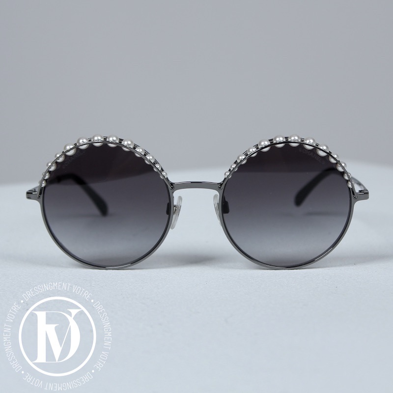Dénichez notre Lunettes de soleil rondes en métal noirci - Chanel dans la collection Lunette d’occasion de luxe pour femmes fabriqué par la grande maison de luxe Chanel
