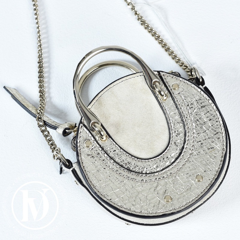 Appréciez notre Mini sac Pixie en cuir beige et doré - Chloé dans la catégorie Sac porté épaule de luxe de seconde main pour femmes élaboré par la grande maison de luxe Chloé