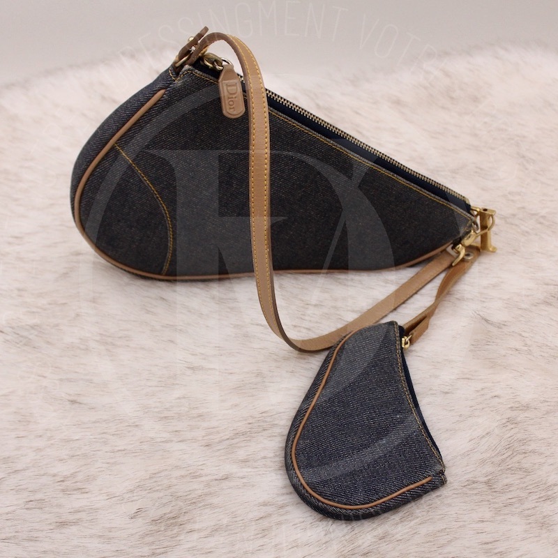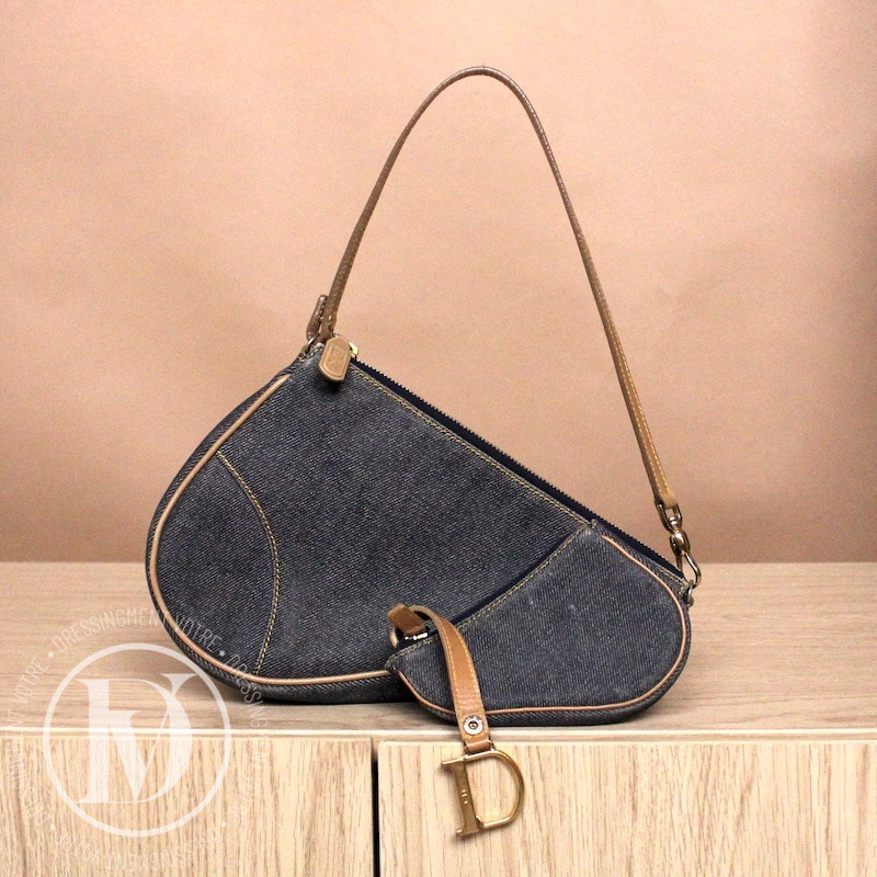Appréciez notre Mini sac Saddle vintage en denim bleu - Dior dans la catégorie Sac porté épaule de luxe de seconde main pour femmes élaboré par la grande maison de luxe Dior