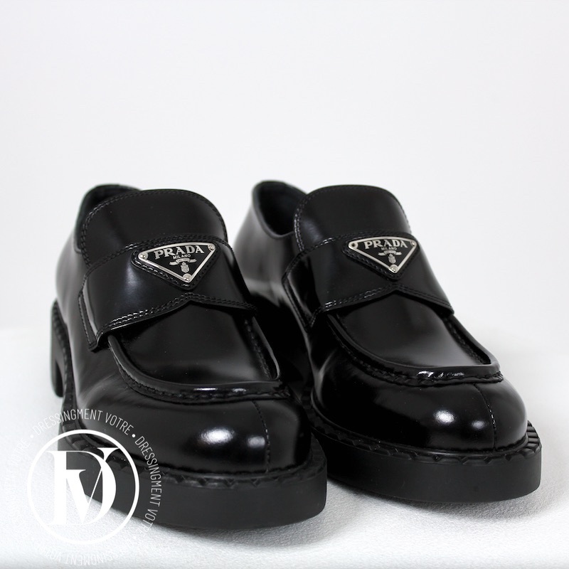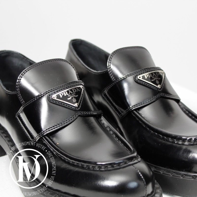 Découvrez notre Mocassins Chocolate en cuir noir p.39,5 - Prada dans la catégorie Chaussure de luxe d’occasion pour femmes élaboré par la grande maison de luxe Prada