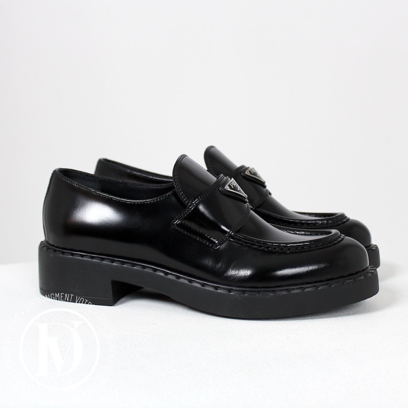 Mocassins Chocolate en cuir noir p.39,5 – Prada