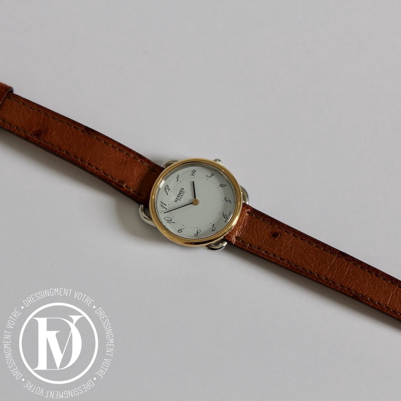 Dénichez notre Montre Arceau 25mm autruche gold - Hermès dans la catégorie Montre de luxe d'occasion pour femmes élaboré par la grande maison de luxe Hermès