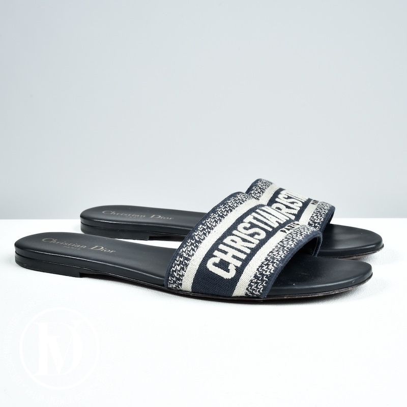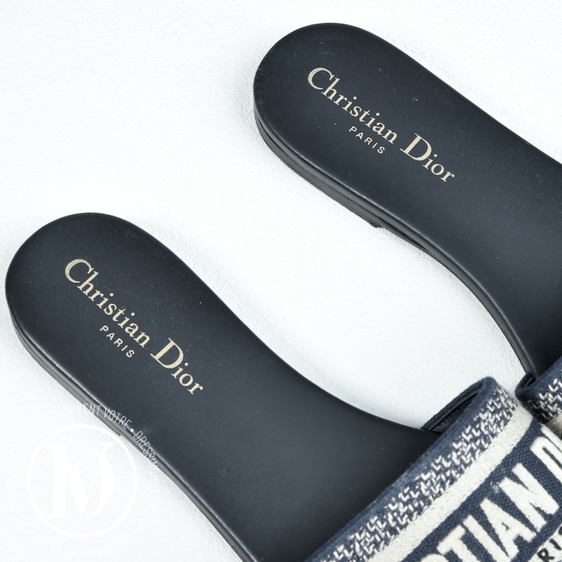 Achetez notre Mules D-Way en cuir et coton bleu p.39 - Dior dans la catégorie Chaussure de luxe d’occasion pour femmes élaboré par la grande maison de luxe Dior