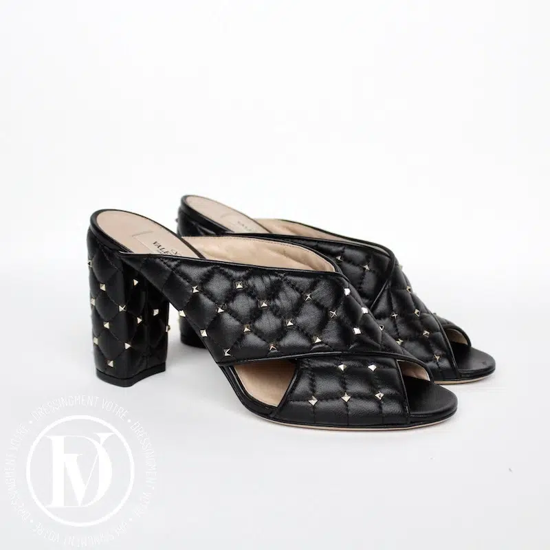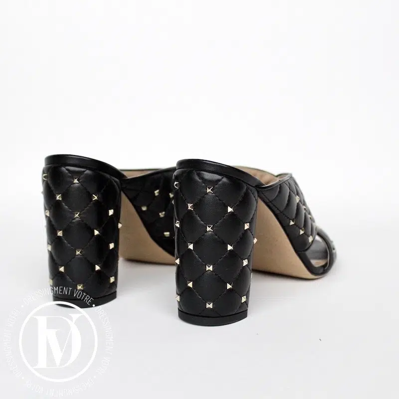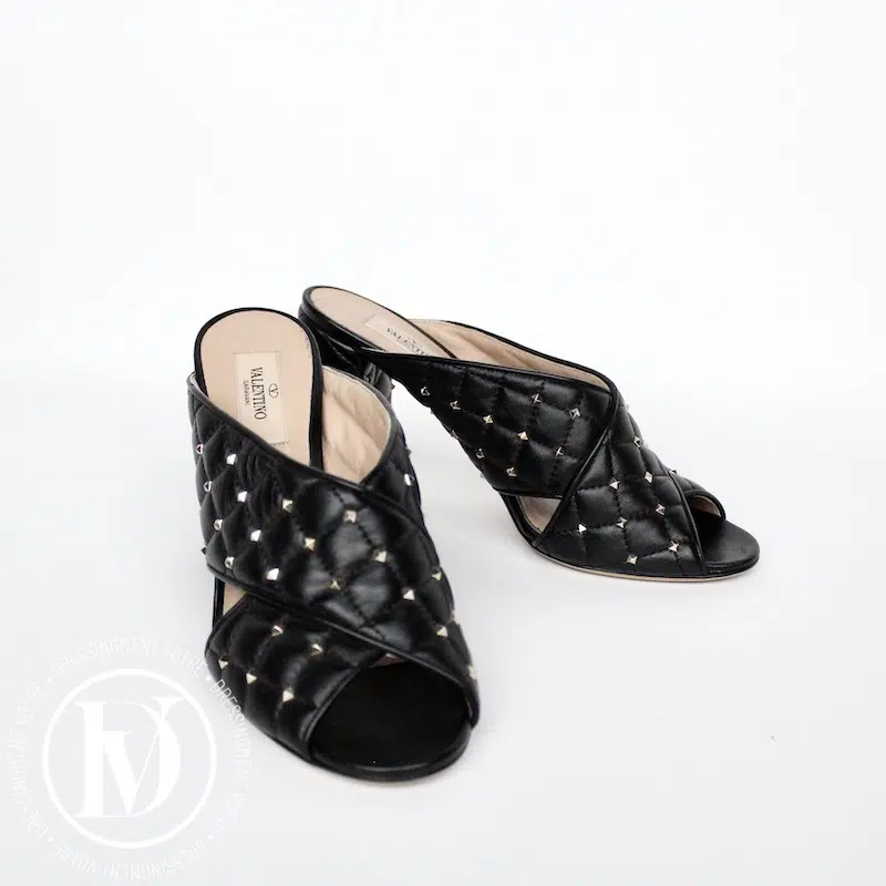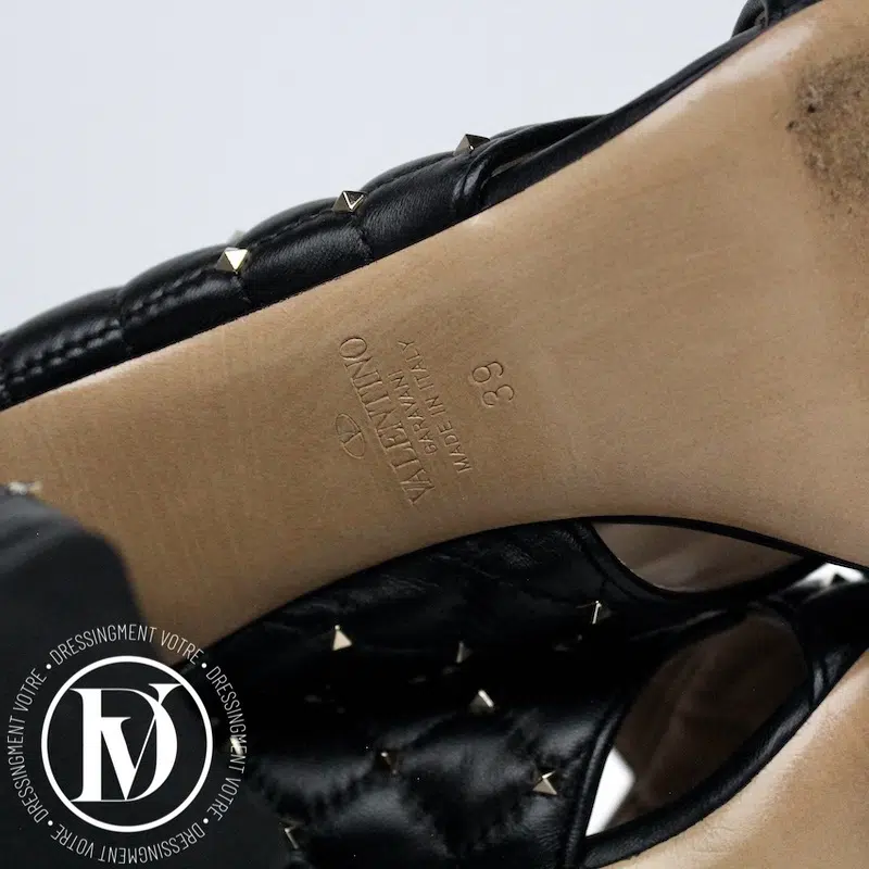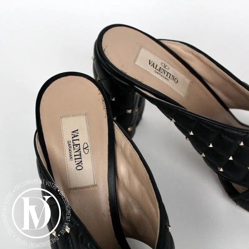 Appréciez notre Mules en cuir noir matelassé rockstud p.39 - Valentino dans la catégorie Chaussure de luxe d’occasion pour femmes élaboré par la grande maison de luxe Valentino
