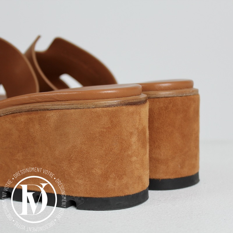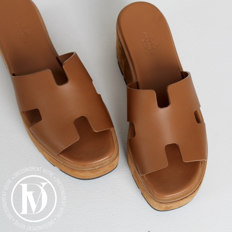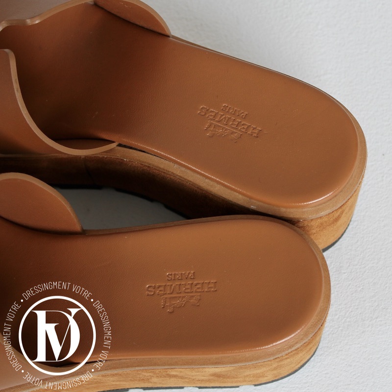 Mules Eze 30 cuir et suede tan p.38 – Hermès
