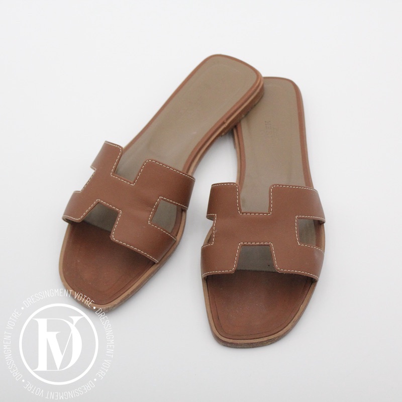 Découvrez notre Mules Oran en cuir gold p.37,5 - Hermès dans la catégorie Chaussure de luxe d’occasion pour femmes élaboré par la grande maison de luxe Hermès