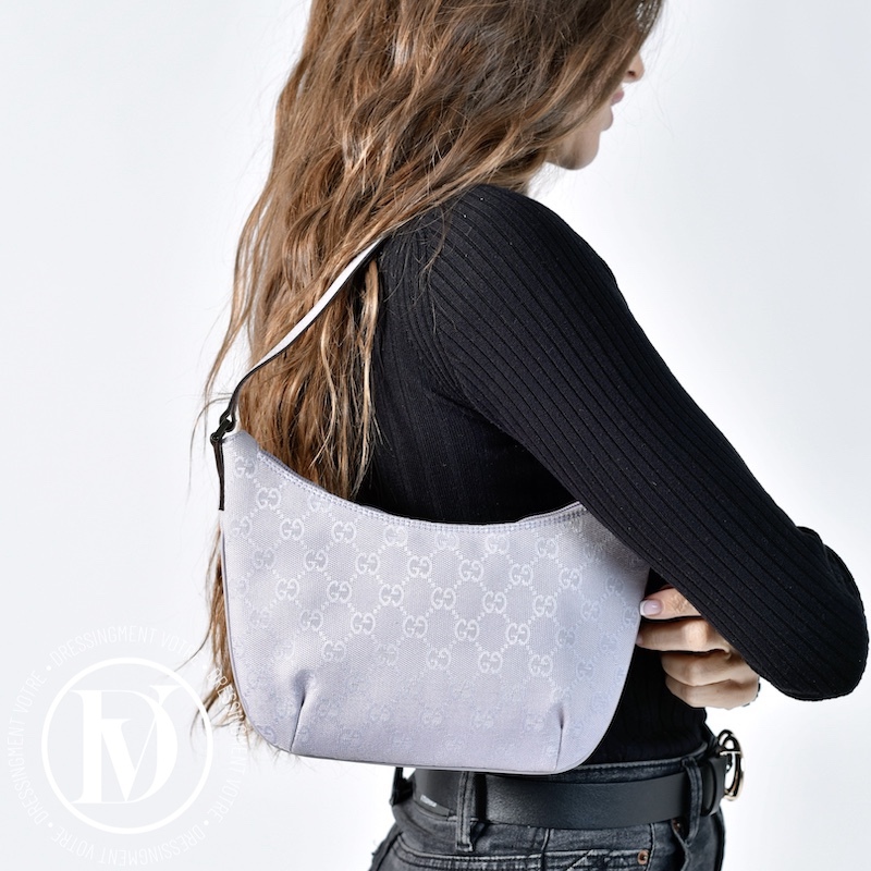 Découvrez notre Petit sac monogramme GG en toile lavande - Gucci dans la gamme Sacs portés main luxe occasion pour femmes créé par la grande maison de luxe Gucci