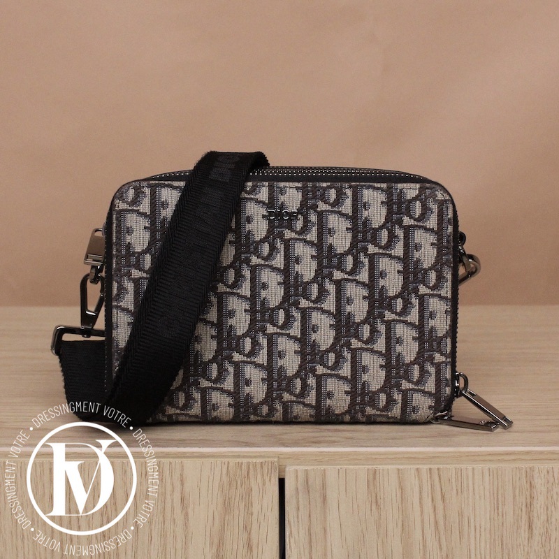 Pochette bandoulière en toile oblique beige et noir – Dior