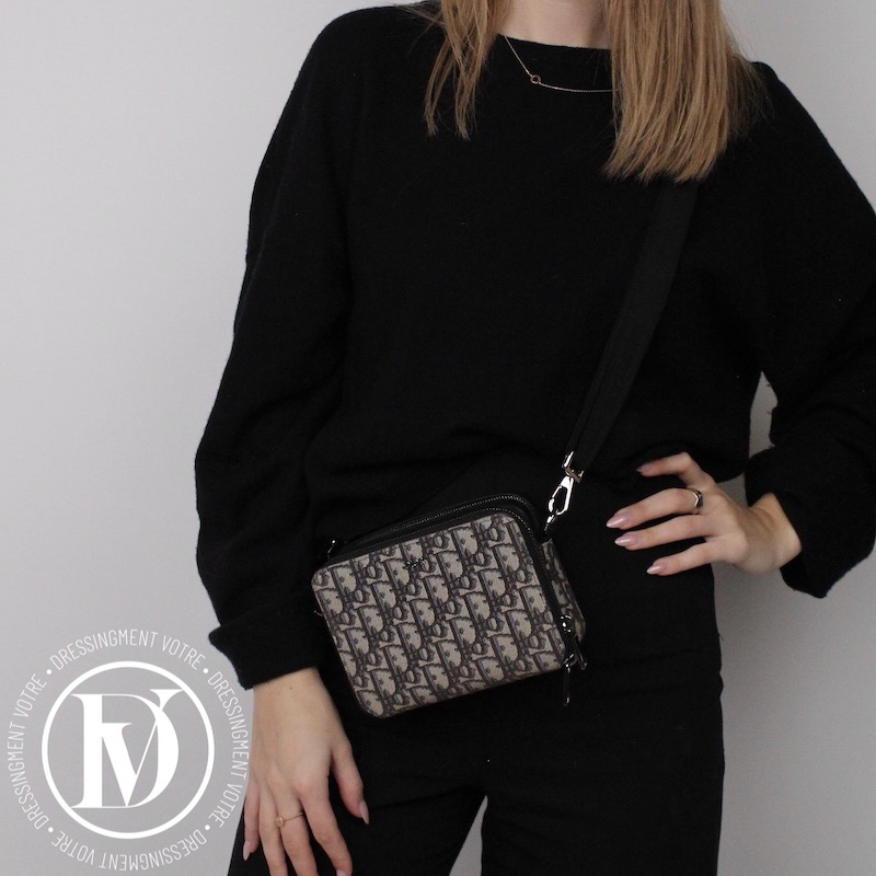 Pochette bandoulière en toile oblique beige et noir - Dior Dressingment Votre