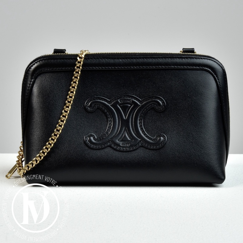 Découvrez notre Pochette chaîne Triomphe cuir noir - Céline dans la catégorie Sac porté épaule de luxe de seconde main pour femmes élaboré par la grande maison de luxe Céline