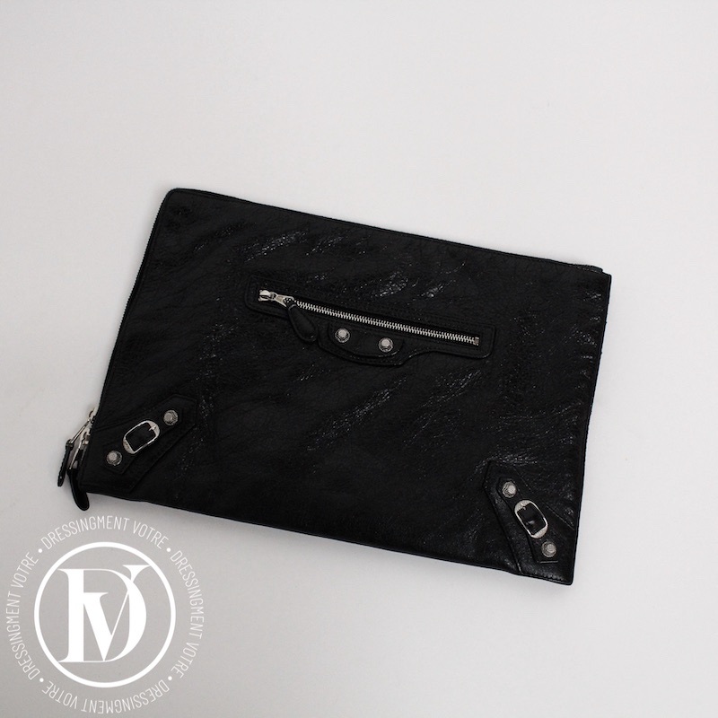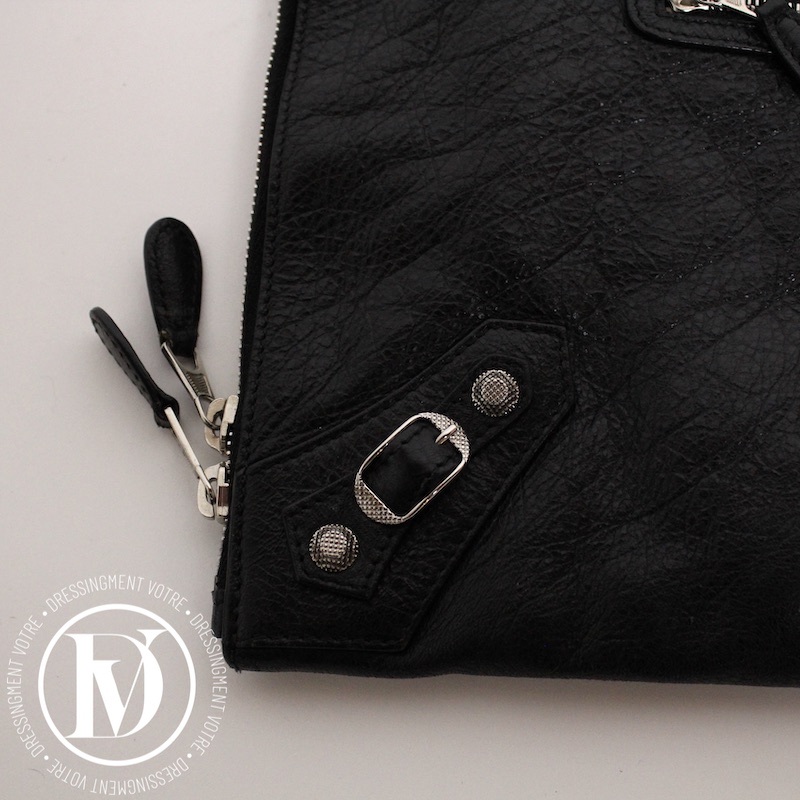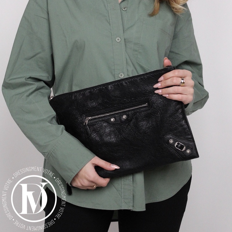 Découvrez notre Pochette City en cuir grainé noir - Balenciaga dans la catégorie Pochettes de luxe d'occasion pour femmes élaboré par la grande maison de luxe Balenciaga
