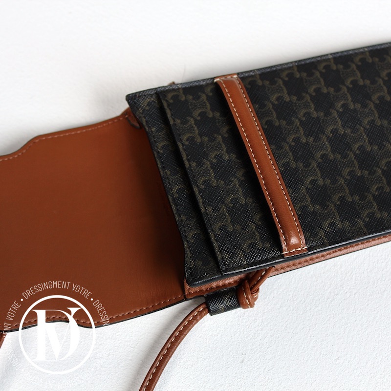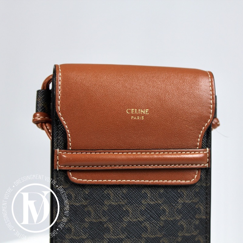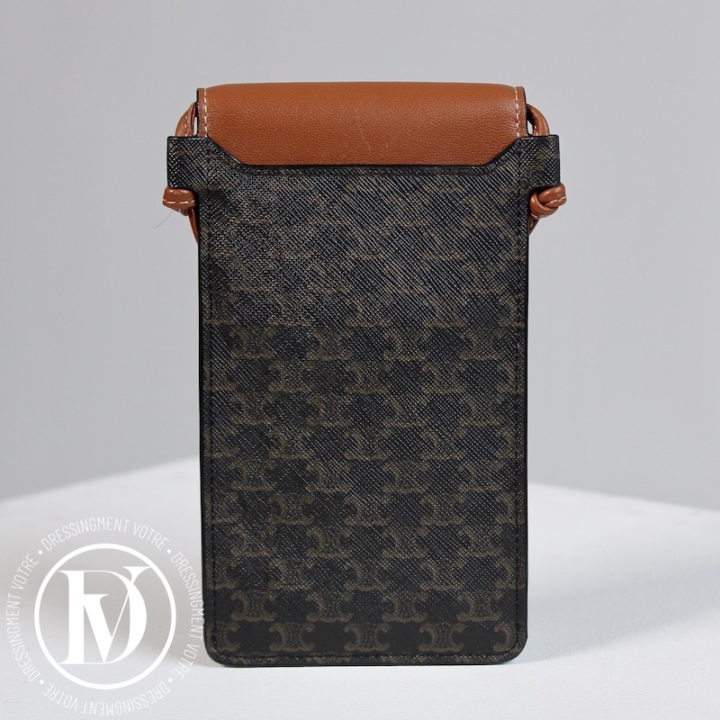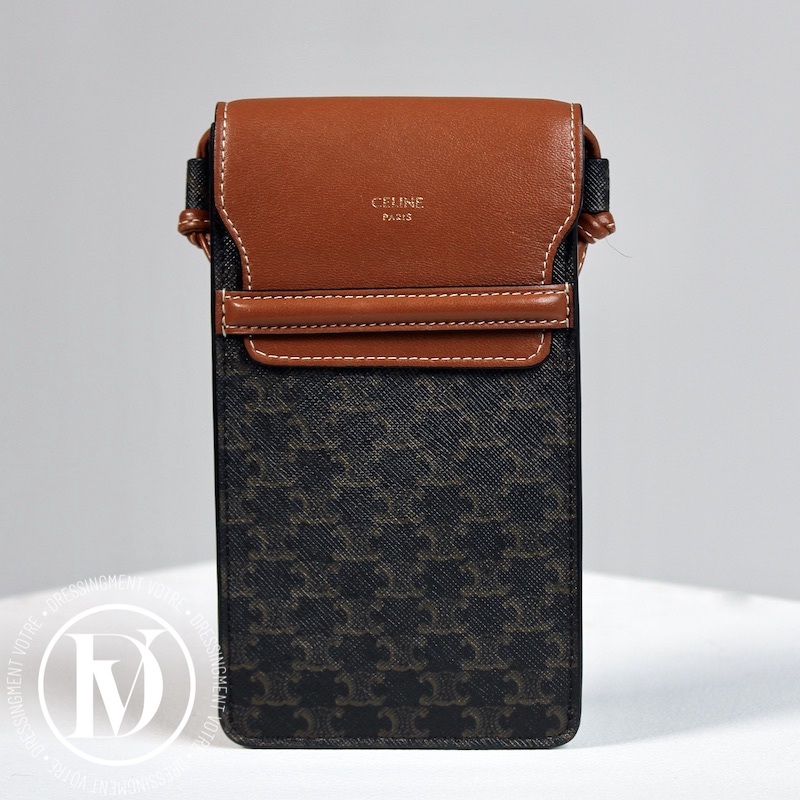 Porte-téléphone en cuir et toile triomphe – Céline