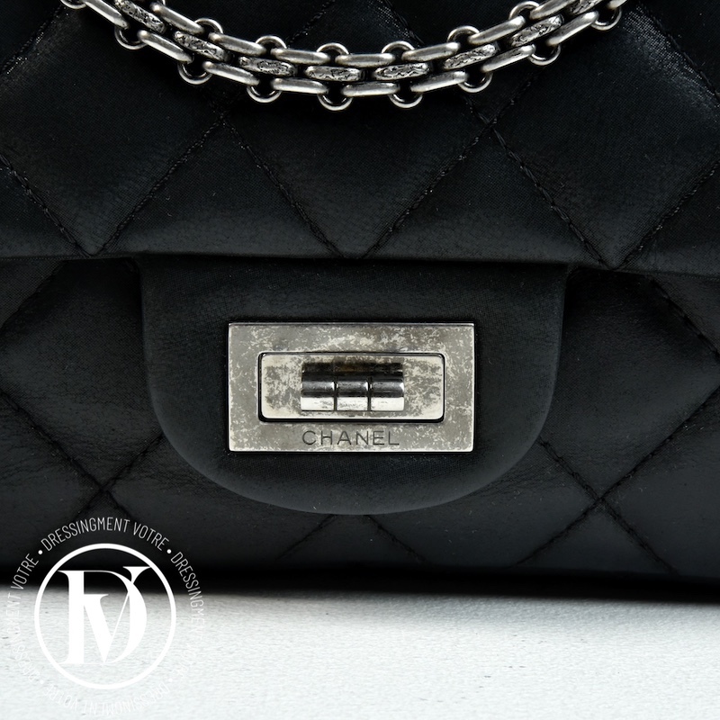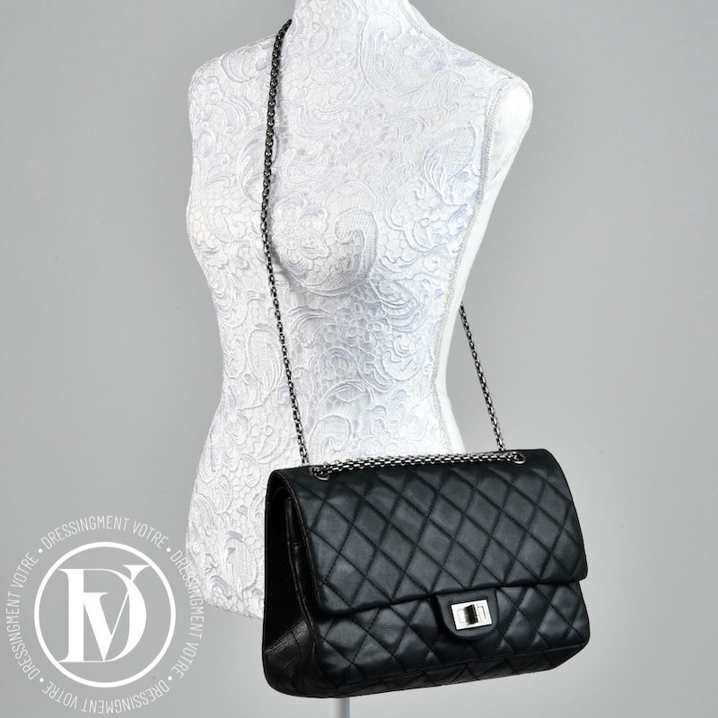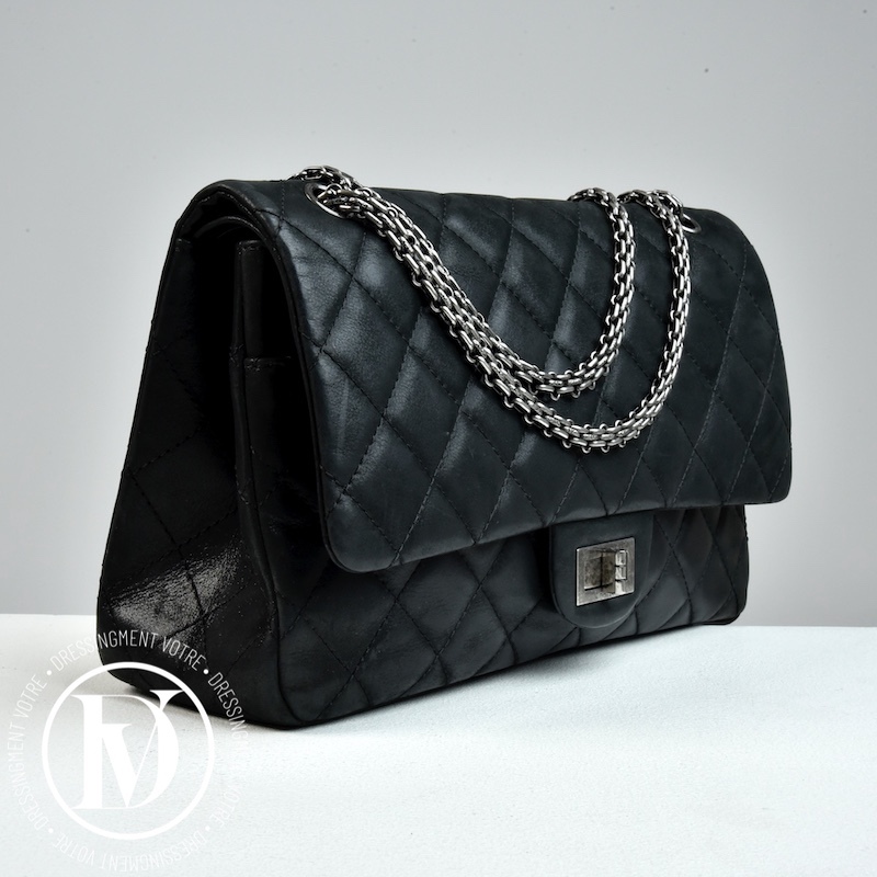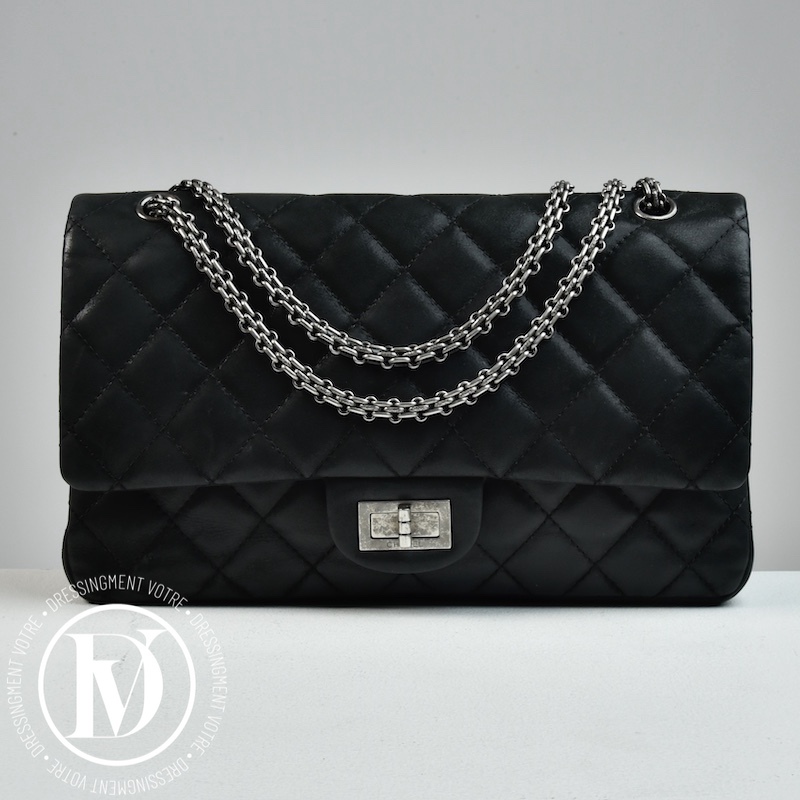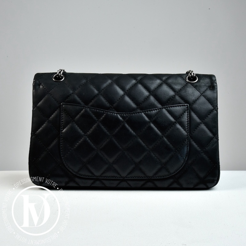 Achetez notre Sac 2.55 large en cuir noir - Chanel dans la gamme Sacs portés main luxe occasion pour femmes créé par la grande maison de luxe Chanel