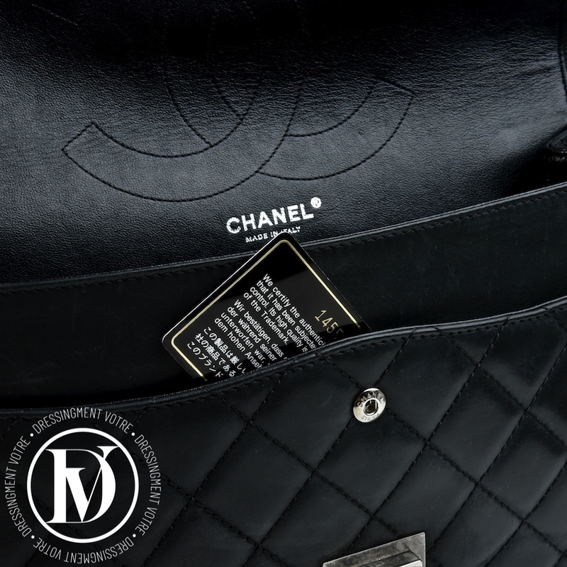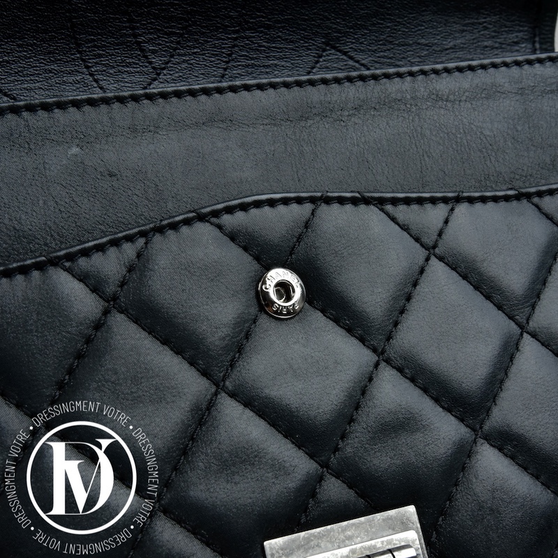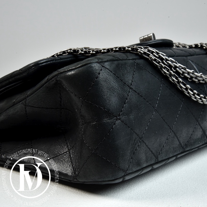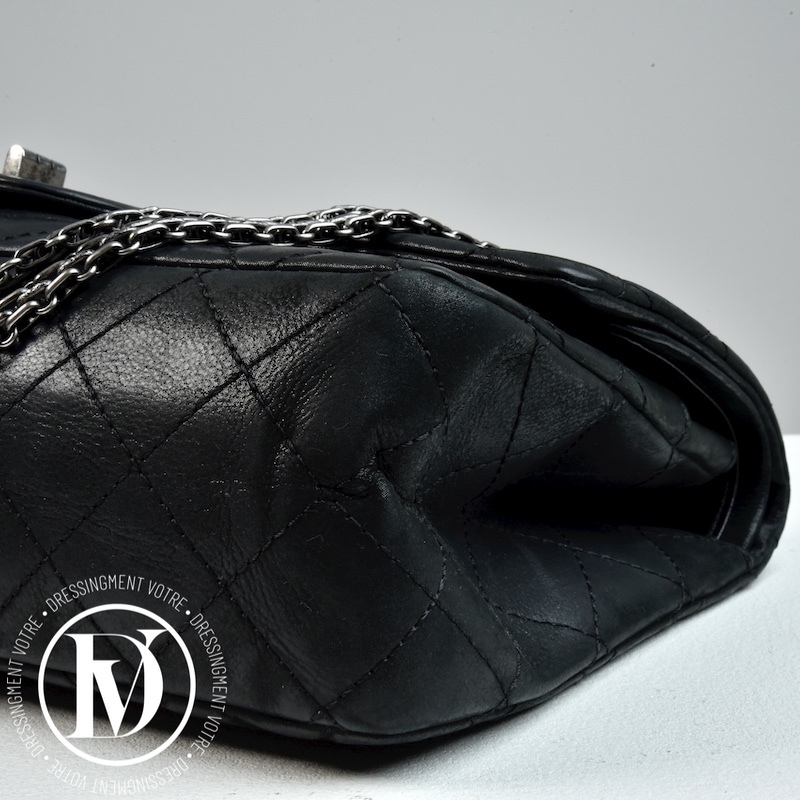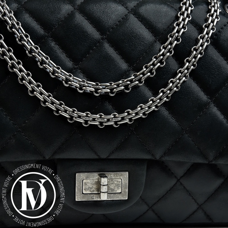 Achetez notre Sac 2.55 large en cuir noir - Chanel dans la gamme Sacs portés main luxe occasion pour femmes créé par la grande maison de luxe Chanel