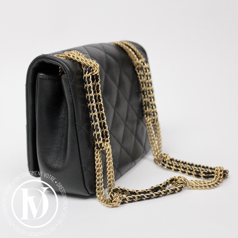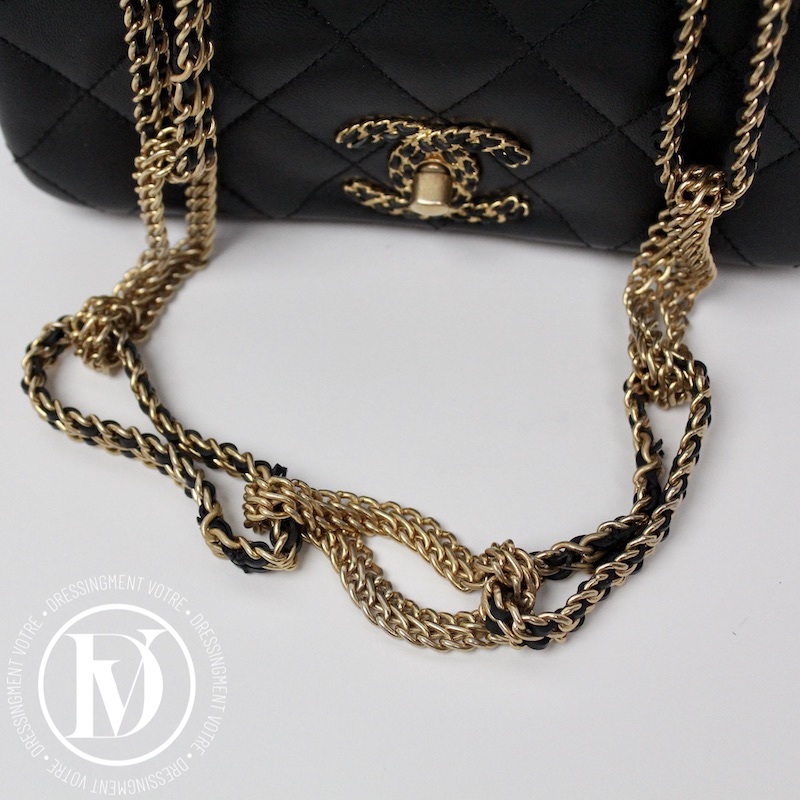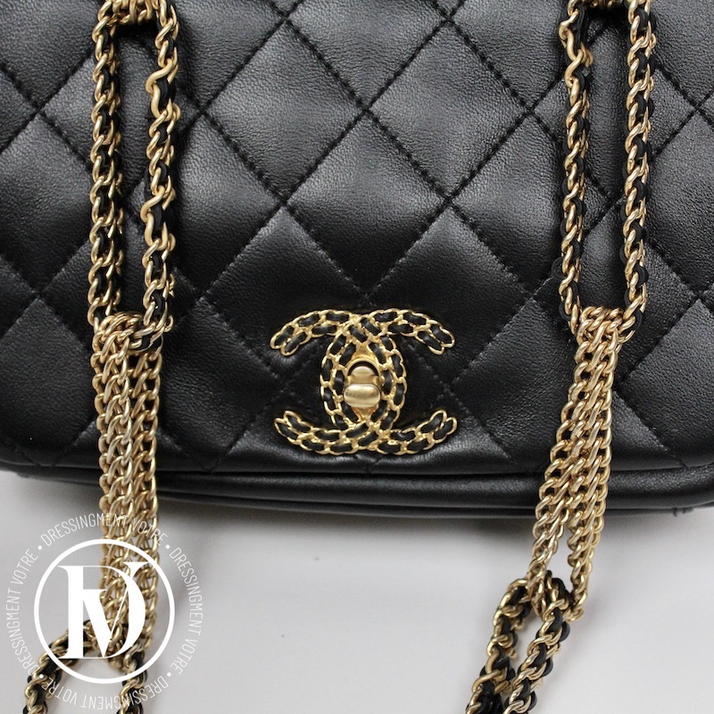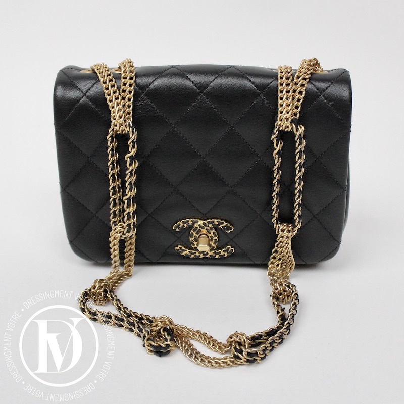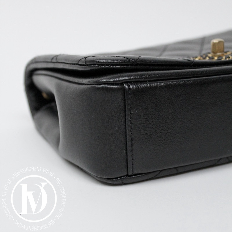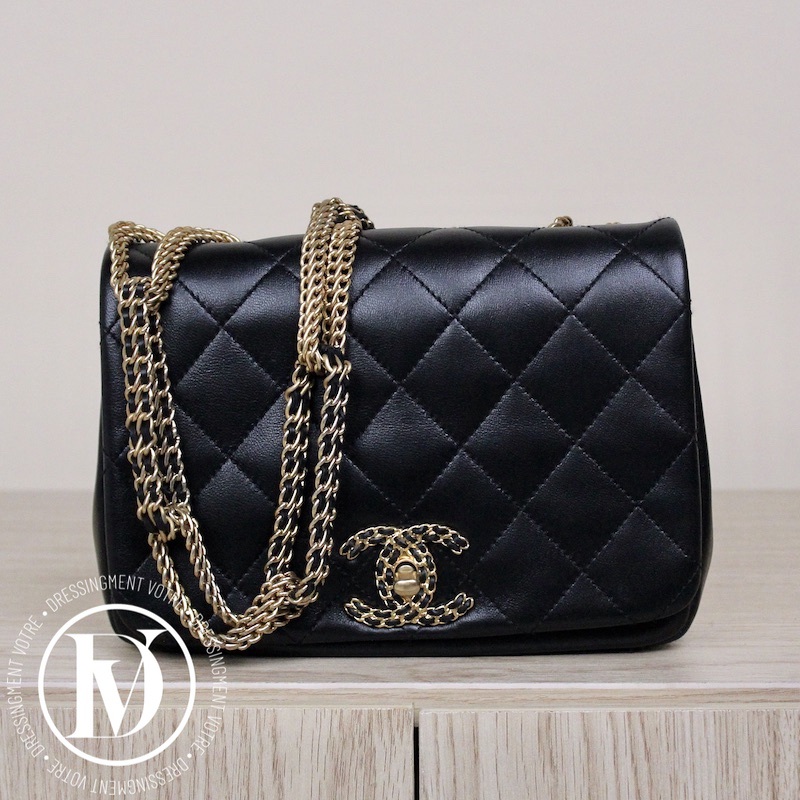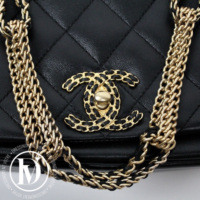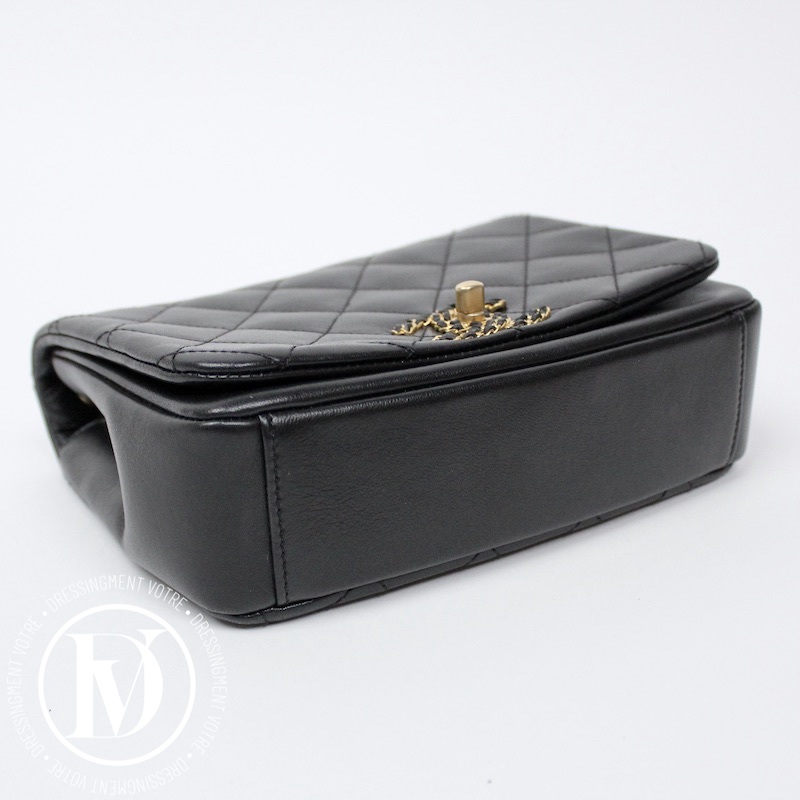 Sac à rabat CC en cuir matelassé noir – Chanel