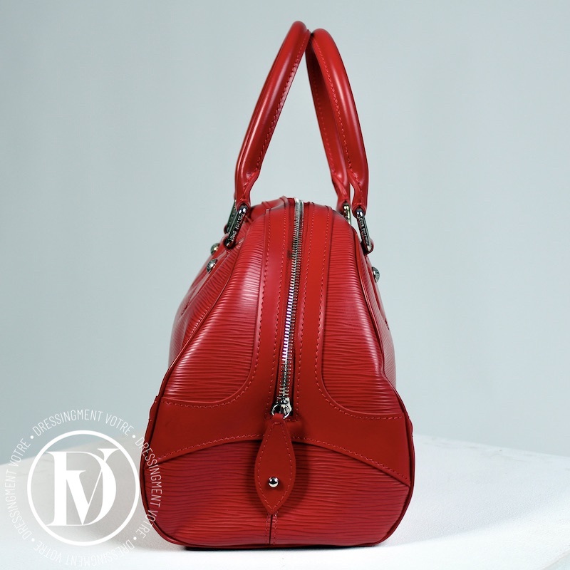 Achetez notre Sac Bowling Montaigne en cuir rouge - Louis Vuitton dans la gamme Sacs portés main luxe occasion pour femmes créé par la grande maison de luxe Louis Vuitton